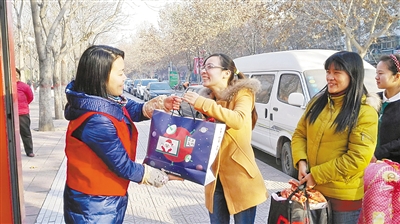 本报讯 (记者 陈曙光) 12月18日上午,新区育才幼儿园乐乐一班的老师及几名家长将一批衣服、棉被、鞋子等物品捐到了市体育场志愿服务站,再由服务站的工作人员送给需要的人。