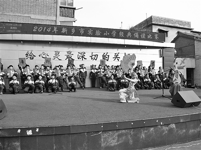 ![]() 本报讯 12月11日下午3时,新乡市实验小学利用校园文化阵地,充分发挥环境育人的作用,隆重举行了五年级“感受经典,相约圣贤”古诗文经典诵读大赛。 首先五年级500多名学生面对国旗,一起表达自己的心声:“我热爱我的祖国,我祝福我的祖国,我建设我的祖国,愿伟大祖国繁荣昌盛。”诵读演出在热烈的氛围中开始,优美的经典诗文,精彩的朗诵表演,奏响了中华民族传统文化的和谐旋律。整个大赛表演形式新颖有趣、形式多样,既有激情飞扬的吟唱,也有清淡儒雅的低诵,同学们通过配乐朗诵、情景剧、古诗串联、舞蹈、综艺等形式,将中华优秀的文化展示出来。同学们精神饱满,尽情朗诵,感情真挚,以不同的形式来诠释中华经典文化,表达自己的情感和对经典诗文的理解。 活动虽然结束了,但中华经典诗文的音韵还在师生们耳边回响,中华经典诗文的千古风韵还在他们心头荡漾。所有现场观众真切地感悟到了中国古典文化之美,品味到了中国传统文化的博大精深。 通过此次活动,学生受到中华传统文化的熏陶,该校表示将传承中华文化,提高语文素养,丰富校园人文底蕴,培养学生的民族自尊心和自豪感,使广大学生积极树立正确的人生观和价值观。 (吴一凡 文/图)