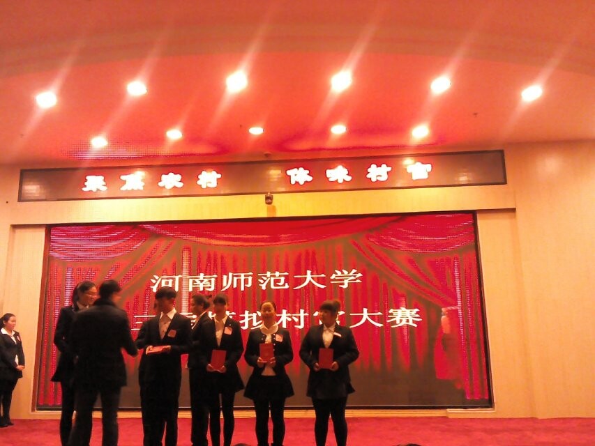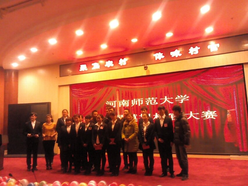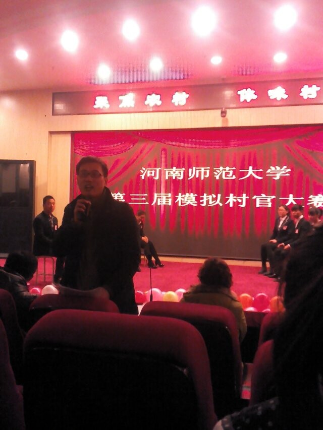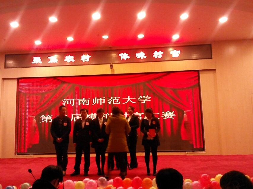 河南师范大学新农村建设学会成功举办“聚焦农村,体味村官”第三届模拟村官大赛 12月21日晚,新农村建设学会在思想政治理论课实践教学平台成功举办了以“聚焦农村,体味村官”为主题的第三届模拟村官大赛。2013级辅导员徐新豪,茹岗村委会主任陈艳梅莅临活动现场,社会事业学院大学生“三自”委员会主席团成员及2014级全体新生共同参加了此次活动。 活动伊始,主办社团以PPT的形式向同学们简单明晰地介绍了村官的含义及发展历程,阐述了开设村官的重要意义和实施效果。接下来进入选手角逐环节,十位选手依次上台向观众展示了近几年来自己家乡的建设现状及发展前景。2号选手王心芳以焦作市山阳区墙南村为例分条缕析地介绍了村庄的转型与变迁,并重点提出了自己对于家乡服务业发展的一些见解;6号选手何禄康对周口市张店尾毛产业的发展做了详细解说,针对尾毛产业发展的不足,他提出了建设工厂、延长产业链的发现思路,得到评委的一致好评。演讲及评分过后,十位选手分成了以何禄康和王心芳为队长的两个小组,比赛进入了更为激烈的强强对抗环节。在选手准备期间,社团成员为大家献上了一部精彩的小品,逗得观众捧腹大笑,活跃了现场气氛。随后两队人员对模拟场景处理措施进行了针锋相对的辩论。最后,徐新豪老师对每位选手的表现作了细致点评。他在充分肯定十位选手的优秀表现的同时,又分别指正了每位选手的不足之处,提出新农村建设要契合当地特点,对于农村发展建设分析要合理且全面的建议。至此,比赛圆满结束。 本次活动使更多的师大学子了解了农村发展的迫切性和重要性,也清楚了农村的发展现状及未来趋势,有利于鼓励大学生关注农村、走进农村、服务农村,增强对于“三农”问题的理解,从而为农村建设贡献力量。(新农村建设学会 毛佳)