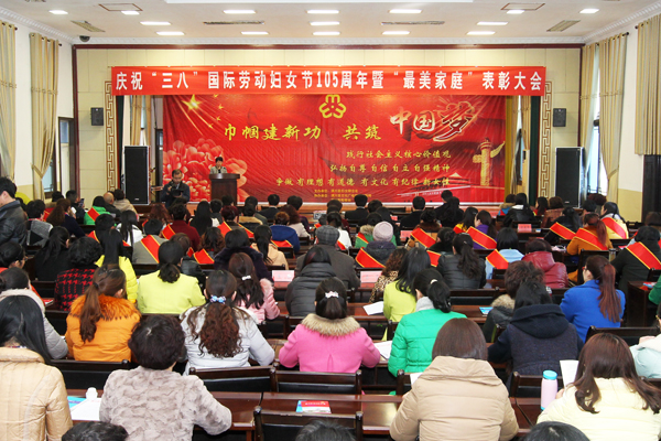 3月6日下午,由潢川县妇联主办,县文广新局、县电视台协办的“巾帼建新功 共筑中国梦”为主题的潢川县庆“三八”国际劳动妇女节105周年暨“最美家庭”表彰大会在县委礼堂举行。 县委书记赵亮,县长兰恩民,县委副书记、潢川开发区主任杨春丽,县委常委、常务副县长刘璇,县委常委、宣传部长胡国平,县人大副主任严长生,副县长郭振萍,县政协副主席毛建华,县开发区副主任陈成出席表彰会。各乡镇(办)分管妇女工作的领导、妇联主席,县直各单位分管妇女工作的领导、妇委会主任,县直各单位二级机构分管妇女工作的领导、妇委会主任,各乡镇(办)、县直、企事业单位科级女干部,开发区科级女干部,荣获全国、省、市、县妇联系统表彰的先进集体、先进个人,女企业家代表,各中小学女校长200余人参加了此次表彰会。 表彰会上,杨春丽代表县委、县政府致辞,并向奋斗在全县各条战线上的广大妇女和妇女工作者表示节日的问候,向获得表彰的先进集体和个人表示热烈的祝贺。杨春丽以路正则事业成、巾帼花开竞芬芳、巾帼建功花更艳为题,对2014年县妇联工作及全县广大妇女作出的贡献给予了充分肯定,对未来妇女儿童事业发展提出了殷殷希望。 她指出,近年来潢川县各级妇联组织紧紧围绕中心、服务大局,立足基层、服务妇女,牢牢把握建设坚强阵地和温暖之家这一主线,不断深化“双学双比”、“巾帼建功”、“文明创建”三大主题活动,搭建维权、创业、文明、爱心四个平台,团结动员全县妇女建功立业,为促进潢川县妇女事业发展、夯实党执政的群众基础作出了突出贡献;广大妇女解放思想、更新观念、奋发有为,在全县各个领域施展才华,建功立业,涌现出一批批可树可学、可歌可泣的巾帼英雄,奏响了一曲曲自尊、自信、自立、自强的巾帼之歌,在“富强、宜居、活力、生态、和谐”五大潢川建设中发挥出了“半边天”的作用。 她强调,各级妇联要紧紧围绕“巾帼建新功、共筑中国梦”这个主题,以弘扬“四自”精神为重点,更多地关注妇女诉求,更好地维护妇女权益,更加有力地支持妇女创业,做好广大妇女工作生活的坚强后盾;她希望全县广大妇女在解放思想上提升境界,在服务发展上身先士卒,在促进和谐上勇于担当,争做自尊自信、自立自强、务实创新的现代女性,争做爱岗敬业、建功奉献、有所作为的模范女性,争做珍爱家庭、尊老爱幼、弘扬新风的美丽女性,争做思想进步、道德高尚、气质高雅的魅力女性,以当代妇女的良好形象和时代风采,为加快潢川发展做出新的更大的贡献。 会议表彰了潢川县志愿者联合会等5个巾帼志愿服务先进集体,春申办事处妇联会等10个妇女工作先进集体,河南滨湖印务科技有限公司副总经理张伟等10名巾帼创业之星,刘华彬家庭等11户最美家庭。县委书记赵亮、县长兰恩民等县领导登台为受表彰的先进集体和先进个人代表颁发了奖牌和荣誉证书。(河南省潢川县妇联会)