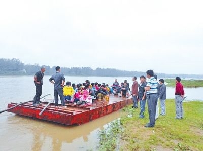 老师分批坐船护送学生过河 “有船了,可以回家咯。”昨日,在信阳市平桥区平昌关镇,看到学校安排的船只,孩子们开心地说道。 连日来,信阳市淮河流域普降大雨,淮河水位上涨。平桥区平昌关镇连接该镇淮河对岸李营、刘湾村的几座便民石板桥被上涨的洪水淹没。“桥被河水淹了,妈妈在河对岸看着我干着急。”一名小学生告诉记者。 得知此情况后,该市平桥区平昌关镇及镇中心校迅速找来摆渡船只,打通了通往对岸的“道路”,将李营、刘湾村在镇中、小学上学的120多名学生集中起来,老师分批坐船护送学生过河。