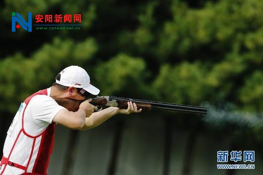 9月21日,中国队选手杜宇在比赛中。当日,在2014仁川亚运会射击男子飞碟多向团体赛决赛中,中国队以357中的成绩夺冠。 新华社记者沈伯韩摄