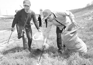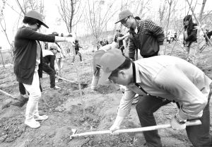 志愿者在南水北调中线工程渠首沿线植树 本报记者 王林晓 摄(资料照片)