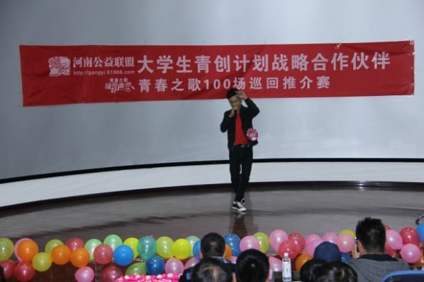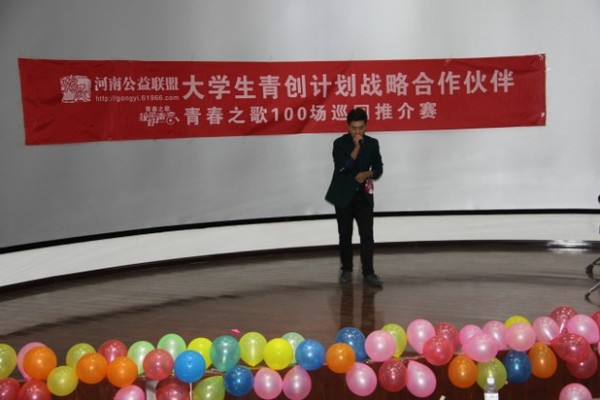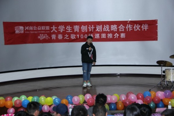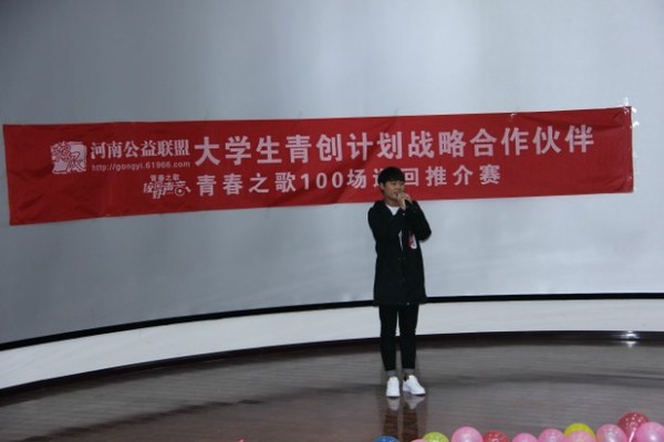 好声音编辑部:清新的文艺洒满校园,青春之歌音乐公益微视频吹响集结号;由河南公益联盟、豫民网·开封、开封大学创新创业孵化园共同组办的青春之歌100场巡回推介赛开大专场在开封大学拉开帷幕,作为巡回推介赛的开封第一站,开封大学参赛的15位选手,用歌声和激情唱响了百场巡回赛的号角。经过激烈比拼,10位选手最终拿到晋级名额,一位选手经过现场有力的互粉和投票获得了最佳人气称号。 活动现场,开封市众创空间团工委书记 马洪亮、内地原创歌手丁一、河南旺运隆文化传媒公司胡子轩、顶尚演艺经纪公司展昭、河南清心文化传媒靳清桥、梓宇美妆工作室 王梓宇、Dking潮流舞蹈中心 郭彤雪等专业评委老师为选手进行了打分点赞。 当活动结束之后还有个意外的小惊喜,来自河南旺运隆文化传媒公司总监 胡子轩老师对尚银行选手说到“经过对你在现场的表现,发现你和我们公司的一个演员特别搭,所以我想邀请你加入我们公司。” 选手尚银行听到特别激动与高兴,当即表示非常的愿意,感谢老师给我提供的这次机会。来自河南清心文化传媒的制片人靳清桥也表示:通过整场的表现来看,我觉得有三个人的表演特别满意,希望歌手能来到剧组参与演出。 据主办方介绍,大学生青创推广计划暨青春之歌100场巡回推介赛的活动主题是赏识、青创、责任、梦想。负责人在接受采访时也向全市大学生青年发出了邀请:“只要你有音乐梦想,只要你爱唱歌,就可以报名参加,获得冠军歌手将在全城推广。 赛后,开封大学专场活动负责人徐鹏飞告诉记者:“本次活动秉着公开、公平、公正的原则,希望这次活动达到吸引社会关注、彰显企业责任价值、丰富校园文化形态、促进大学生创业、就业的目的。”此次活动特别感谢 豫民网 、豫青网 、汴京网 、梦想中国网、开封城区生活频道、凤凰生活周刊等十几家媒体单位的支持。