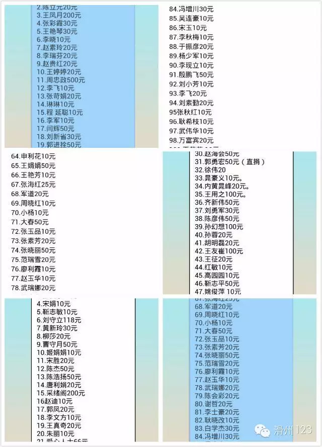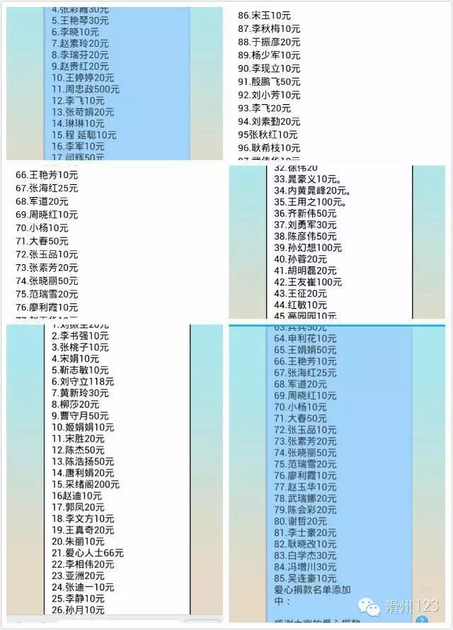 在此特别感谢为“爱心十元捐”项目默默付出的幕后英雄——滑县工商局张淑敏主任,游明彩,潘兰兰,陈立芳,焦虎乡志愿者负责人毛华伟,王晓曼,方新颖,帅云,李瑞,武瑞娜等人,他们从项目启动开始一直都在坚守岗位,接受来自各行各业,各个方面的捐款,统计'登记,及时更新发布捐款名单,经过三天的不断发布项目信息。“十元”,可能对我们来说是微不足道的力量,但是相信小力量一定会化成大的温暖……