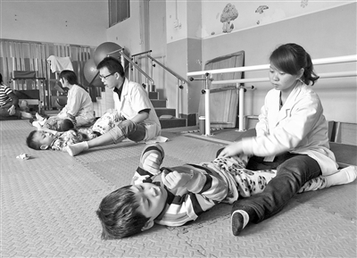 ![]() 10月24日,脑瘫患儿在市残联康复医院接受康复治疗。 吕达 摄