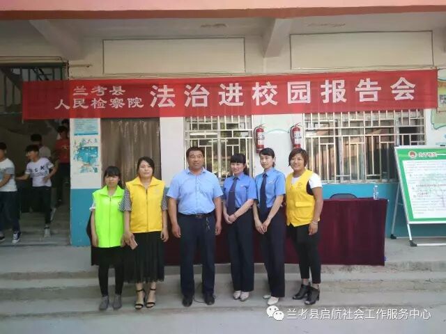 5月25日下午,启航社工与兰考县人民检察院共同开展了“我的青春我做主”为主题的法制进校园报告会。 报告会开始启航社工以“士兵集合”这个简单的小游戏,驱赶同学们的倦意,集中同学们的注意力。 兰考县人民检察院的李楠检察官通过一个个案例帮助同学们理解法律概念,告诫同学们远离校园暴力,远离聚众斗殴,努力控制情绪,理智面对矛盾,成功度过青春期的迷茫。 启航社工和检察院的同志们一起给同学们讲解展板。 会后社工与同学们聊天,同学们表示这次报告会对自身防范意识有很大的提高,受益匪浅,也很希望与社工能有更多的互动。 微信扫一扫