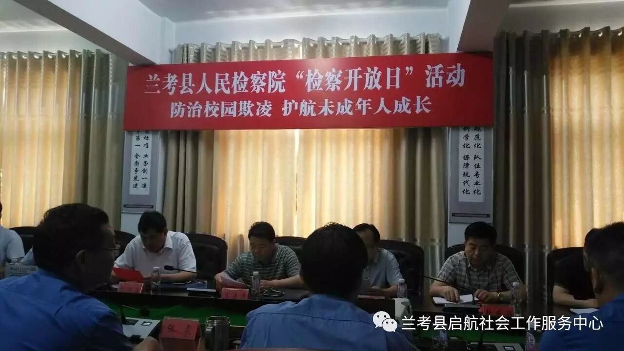 2017年5月26日,兰考县检察院举办了“防治校园欺凌,护航未成年成长”主题检察开放日活动。邀请县人大、县政协委员、人民监督员、民政局、团县委、县妇联、教体局、新闻媒体、县三所高中、部分初中、启航社工等单位机构代表以及阳光社工代表等20余人参加活动。 通过此次活动让我们更进一步的走进和了解到检察院及检察官的工作。对未成年刑事检察工作有了更多的认识与了解,尤其感受到校园欺凌事件对个体及社会的危害之大。 启航社工在会议中发言,希望我们社工机构能够与检察院协作,通过宣讲,以及对未成年涉案人员进行跟进和社区矫正,为涉罪未成年人提供心理疏导、协调学校复学步入社会等方面的专业服务,做到心理行为矫治和法制教育相结合,共同护航未成年人健康成长。