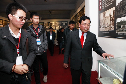 10月31日,由四季青集团独家赞助的中原(鹤壁)文化产业博览交易会开幕,新华社、河南日报、凤凰网等国内30余家新闻媒体、网站记者来到鹤壁采访。下午,各大媒体30多名记者来到四季青文化古玩市场参观采访。 四季青文化古玩市场是鹤壁市重点文化产业项目,规划总面积2万平方米。首期6000平方米于今年7月份开业,目前共有各类文化古玩、字画、玉器、根雕等经营商户300多家。泥猴张张希和、均瓷大师王秋红、书画名家白印、李海文均在这里设有工作室和作品展室。每周周末,这里的古玩市场更是吸引了河北、山东、山西等地的上千人古玩流动商贩来到这里交易。走进市场,装修一新的门店让记者们眼前一亮,记者们怀着深厚的兴趣走进各个商店打探情况。在泥猴张展馆,泥猴张大师正在创作,大家立即围了上去,一睹大师创作风采。记者们对四季青集团刚刚建成的鹤壁抗日战争纪念馆特别感兴趣,紧随公司董事长李东顺参观了一圈。四楼是一个面积千余平方的书画展览。看到鹤壁的书画家正在这里举行书画笔会,许多人上前讨要大师们的墨宝。河南日报记者程梁、凤凰网记者魏金露、新华社河南分社记者杨舟纷纷接受了鹤壁网记者的采访,大家对鹤壁有这样一个规模大、高档高的文化古玩市场感到震惊,大家相信,随着鹤壁文化古玩市场知名度提高,一定能够引领鹤壁文化市场越来越繁荣。