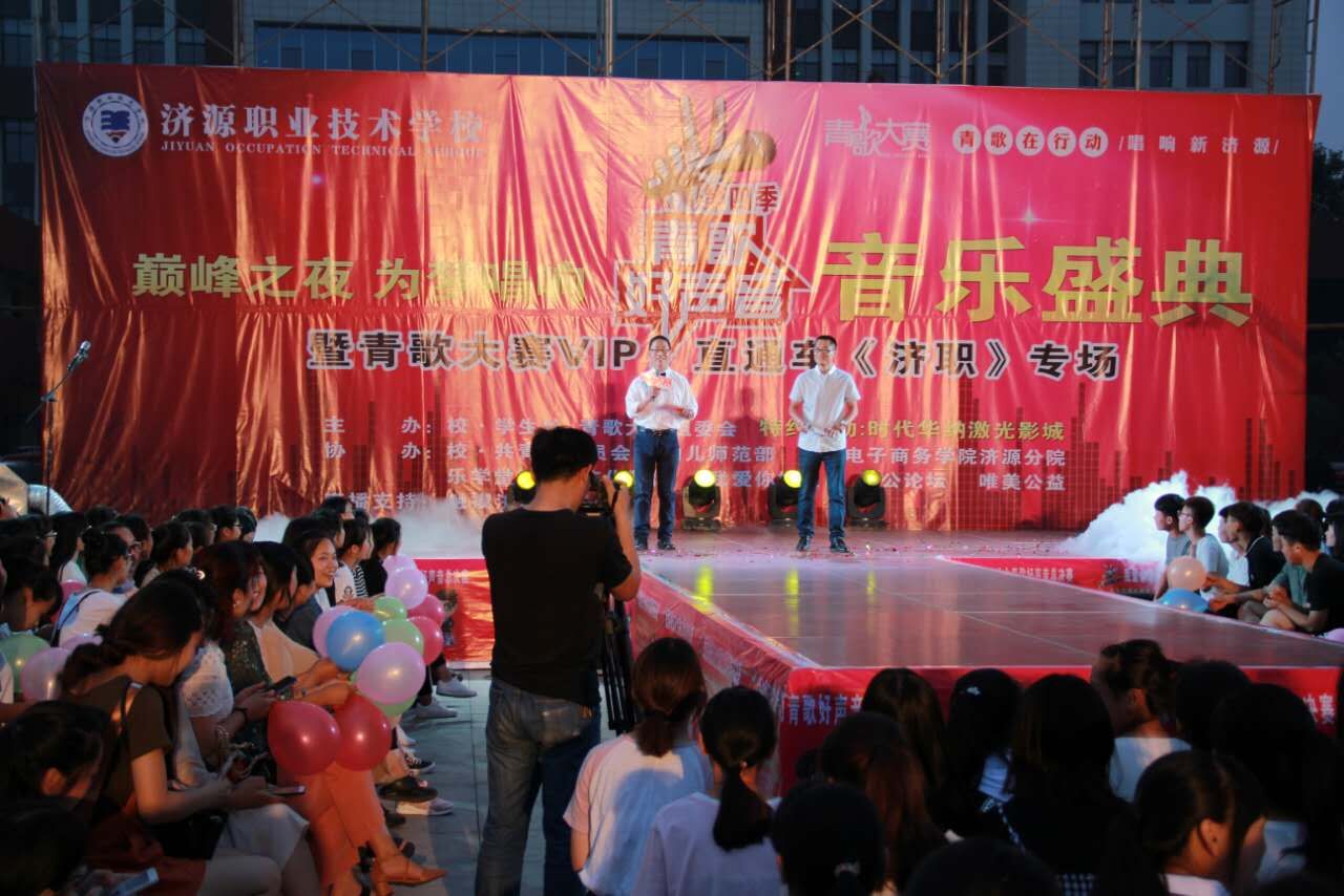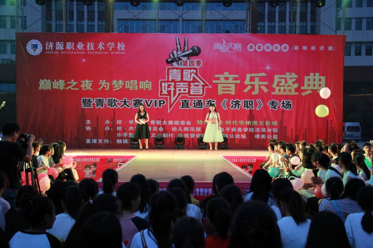 一带一路牵手济职,展示青歌风采,为梦唱响新济源,好声音的主题(赏识、青创、责任、梦想)必将在全市流行开来。6月14日晚,由青歌大赛组委会携手济源职业技术学校·学生处共同主办,校共青团委员会、乐学堂(北京)文化制作、幼儿师范部、老A电商学院等协办的第四季《青歌好声音》音乐盛典暨青歌大赛Vip直通车(济职)专场在校中心广场盛大举行! 为了推动学校精神文明建设,引领职教文化新风尚,唱响济源本土好声音,本次活动主创团队在好声音决赛当晚特别邀请到了济源市 教育局王延文科长,市 教育局、职教园区管委会樊利明主任,济源职业技术学校郭利军校长,青歌大赛导演组王祥崇老师以及校所有班子成员一同出席指导工作并现场观看了音乐盛典。据了解:学校还特别邀请到了济源市文化艺术学校任家波校长和16强选手家长作为盛典现场嘉宾;据统计:当晚全校师生,社会各界人士有4000余人到场观看了盛典。 好声音开始前,济源职业技术学校郭利军校长进行了热情洋溢的致辞,讲话里明确了济职举办此次《青歌好声音》的意义,激励全体师生积极参与到活动中来,积极发挥正能力,引领职教文明风尚,汇精英,聚人心,促进学校各项工作再上新台阶。寄语全体参赛的选手珍惜这次机会,在炫丽的舞台上进行最完美的演绎,展示青春风采,为梦唱响新济职。 记者了解到学校这次的好声音大赛从3月份就开始筹备了,初赛有三百余名学生积极报名参加,历经3个月9场选拔,最终推选出16强选手参加了今晚的音乐盛典。今晚第四季好声音音乐盛典经过两轮激烈角逐,1522班的程媛媛同学荣获冠军,1604班的赵立业同学荣获亚军,1622班的孔淇同学荣获季军,至此音乐盛典取得圆满成功。