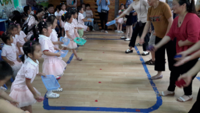 7月的暑期生活即将结束,为了让家长了解幼儿学习情况,促进家园共育的发展。7月29日上午,开封市大纸坊街幼儿园开展了丰富多彩的暑期教学成果汇报展示活动。让家长走进幼儿园,参与幼儿教育活动。 在暑期生活中幼儿园组织了丰富多彩的活动,热情活泼的老师们带领着孩子们一起学习传统文学古诗,进行经典诵读,并赋予了它音乐的色彩;一起用美妙的歌声,快乐的游戏,好玩的花样篮球,让7月的暑期生活充满了欢声笑语。 暑期教学成果汇报展示活动中,教师们将幼儿园暑期课程以游戏贯穿始终,运用灵活多样的活动形式,丰富新颖的活动内容、生动活泼的汇报展示感染着在场的每位家长。如:讲故事、表演朗诵儿歌、歌曲演唱表演、舞蹈、花样篮球展示、大合唱、小组唱等,教室内不时传出热烈的掌声和欢笑声。看着自己孩子一点一滴的成长和进步,家长们绽放出由衷的笑容和感谢。最后,还有家长参与的亲子游戏活动,教师们把教学内容融进游戏中,家长和孩子互相配合,共同参与完成。如:孩子说谜语家长猜、孩子用语言指挥蒙着眼睛的家长到指定地方摸食品并获得奖励......整个展示活动充分体现了今年学前教育的主题“游戏点亮快乐童年”。展示活动结束后,家长们纷纷表示孩子在幼儿园既学到了很多知识,又很快乐,非常感谢老师。