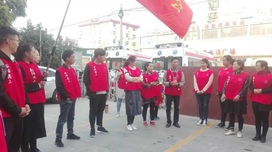 上午9点,在领队刘兴安率领下,46名精神饱满的义工队伍【河南工院汽车工程学院大学生雷锋连8人,快乐的新义工8名】早已整装待发,和九院志愿者、南阳理工学院青年志愿者齐聚第九人民医院大院内。在儿童康复科牛主任、吴院长以及特邀嘉宾——南阳市社区志愿者协会会长杨飞分别作了动员致辞后,纷纷激情走向“签名墙”签名,之后高举旗帜和“有你我们不孤独”等宣传横幅,秩序井然、昂首腾游在百里奚路、中州路、文化路、车站路、新华路等二十余里的宣传战线上。