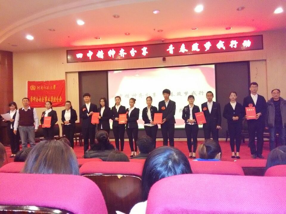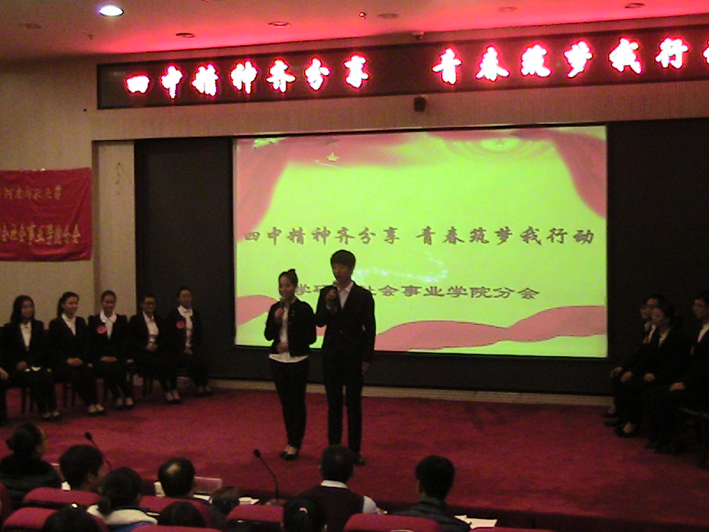 学研会社会事业学院分会开展“践行社会主义核心价值观”系列活动之“四中全会齐分享,青春筑梦我行动” 为大力弘扬社会主义核心价值观,深入学习贯彻习近平总书记系列重要讲话精神。11月23日晚,学研会社会事业学院分会于思想政治理论课实践教学平台举行了“四中全会齐分享,青春助梦我行动”主题活动。我院党委副书记蒋占峰、马克思主义学院老师李小宁、大学生“三自”委员会主席团成员及2013级和2014级部分同学共同参与了此次活动。 活动伊始,一段视频的播放将大家带入到了十八届四中全会的现场。接着,蒋书记提出党的全会的召开不仅关乎到我们国家的局势发展,更与每一个人的成长经历密切相关,并指出党的相关政策是支撑政治思维、提升工作效度、明确前进方向的指导性思想,从而引导大家关注时事热点问题,将自身前途与国家发展紧密结合。蒋书记的阐述得到了大家的普遍认可,现场不时响起热烈的掌声。随后选手们以小组形式进入正式的比赛环节,共分为“计时作答”、“红歌抢答”、“自由论述”和“大众评审”四个环节展开。在“计时作答”环节,选手们充分调动大脑库存,团结协作,不甘示弱;进入“自由论述”环节,各小组分别派代表上台结合四中全会精神分条缕析,大胆阐明各自见解,其中,第一组代表沉着冷静的台风,清晰独到的见解赢得了老师和同学们的一致好评,并最终获得本次比赛一等奖。最后,蒋书记和李老师分别对各组进行精彩点评,在表扬了选手们的出彩表现的同时也指出其中存在的问题,使得大家获益匪浅。 此次活动旨在使同学们更好的领悟四中全会的精神,促进大家辩证客观地面对发展中的问题,从而促进个人全面发展。同时,也有利于践行社会主义核心价值观,推动校园精神文明的创建。(学研会社会事业学院分会 霍素霞)