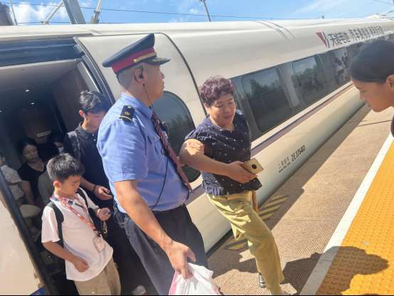 交通强国 铁路先行 ——西安客运段高铁一队列车途中优质服务见闻 记者:李新民,通讯员:司斐 交通强国,铁路先行,西安铁路客运段始终把铁路安全,旅客安全,优质服务工作当做永恒主题,常抓不懈。抓紧,抓好,落实到位。西安客运段高铁一队书记,队长带领全队干部职工,充分发挥党支部坚强堡垒作用,要求全队干部职工,抓安全,保客运,优质服务,圆满完成暑期客运工作。 2025年8月20日,由西安北开往连云港的G2678次列车正如往常一样到从洛阳龙门站开车,乘务员曹雯雯也在按规定进行车内巡视引导旅客,走到3号车厢3B座位的时候发现有位旅客座椅上有幅拐杖,随即询问旅客情况,得知是旅客张女士因左小腿受伤截肢导致的行动不便,要带小孩去看住院的外婆,到永城北也没有人来接她们,家人有事也不能一路陪同,乘务员曹雯雯就告诉张女士:“您安心乘车,途中由我们工作人员来照顾您,我们车长还可以帮你们联系轮椅,我会让我们车长与永城北站联系。”然后就用对讲机告诉车长有重点旅客在永城北站需要轮椅。安顿好张女士和她的小孩就坐后,张女士表示感谢。 随后列车员曹雯雯帮旅客送了杯热水,列车长张家浩巡视到3车3B时,告诉旅客已经与永城北站取得联系,她们到站后会在门口接站,让旅客张女士放心,途中有什么需求及时与工作人员联系。 11点25分列车正点到达永城北站,列车长张家浩早早的就来到3车3B帮张女士整理好随身携带的行李物品。列车停稳后,列车长张家浩将张女士和她的小孩平安的交到永城北站的工作人员手中,旅客张女士对工作人员一路的细心照顾表示衷心的感谢。