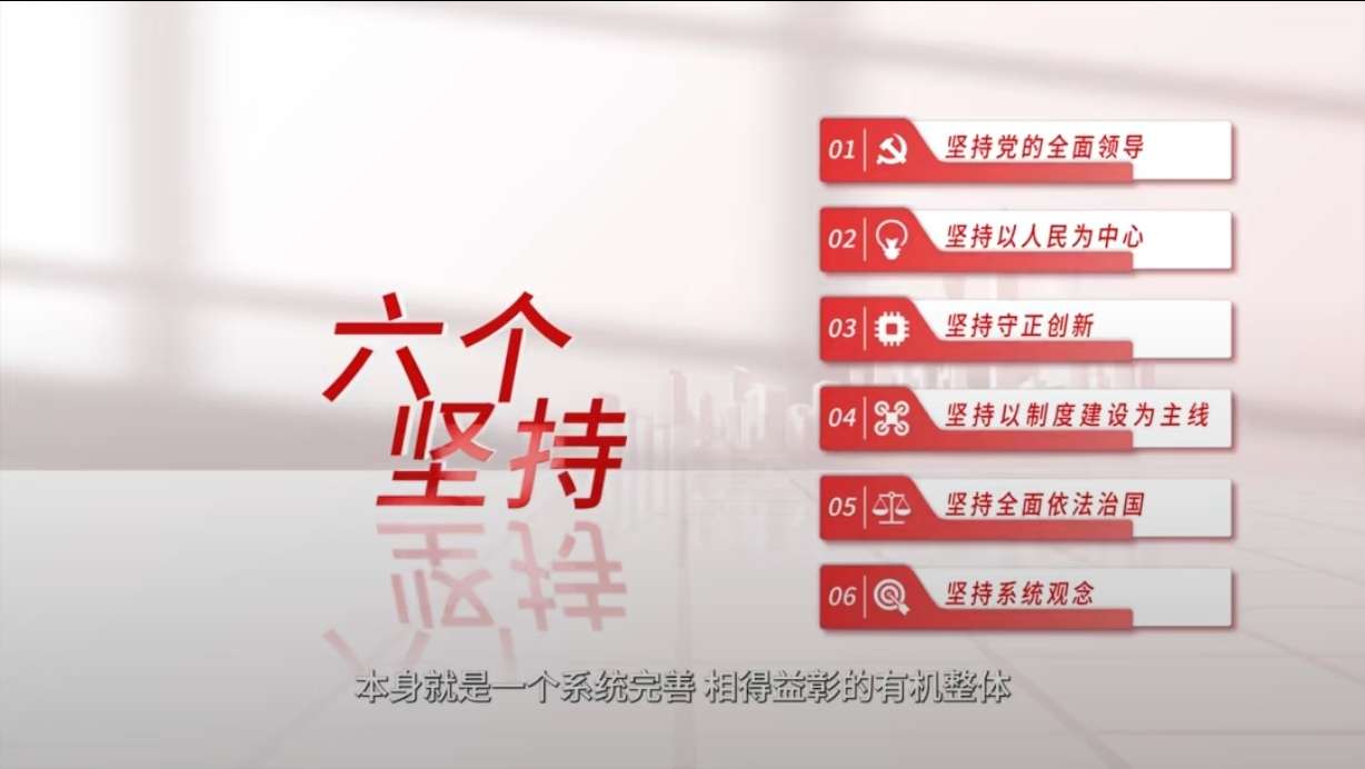 核心观点 ●坚持党的全面领导 办好中国的事情,关键在党。中国共产党领导是中国特色社会主义最本质的特征,也是中国特色社会主义制度的最大优势,始终把党的领导贯穿改革各方面全过程是新时代全面深化改革顺利进行并取得历史性成就的根本保证。 ● 坚持以人民为中心 人民是历史的主体,也是改革的主体。为了人民而改革,改革才有意义;依靠人民而改革,改革才有动力。坚持以人民为中心,回答的是改革的主体和动力问题,涉及为了谁、依靠谁的问题,要求我们尊重人民主体地位和首创精神,人民有所呼、改革有所应,做到改革为了人民、改革依靠人民、改革成果由人民共享。 ● 坚持守正创新 守正创新是进一步全面深化改革必须牢牢把握、始终坚守的重大原则。坚持守正创新,回答的是改革的方向问题,体现了马克思主义唯物辩证法的根本要求,是“变”与“常”、坚持与发展、继承与创新、原则性与创造性、一脉相承和与时俱进的辩证统一。坚持守正创新,首先要“守正”,坚持“不该改的不改”。坚持守正创新,更要“创新”,坚持“该改的坚决改”。 ● 坚持以制度建设为主线 制度是关系党和国家事业发展的根本性、全局性、稳定性、长期性问题。制度稳则国家稳,制度强则国家强。新时代,我们党将制度建设作为全面深化改革的主线突出出来,以制度建设为主线,就要构建系统完备、科学规范、运行有效的制度体系。 ● 坚持全面依法治国 坚持依法治国,回答的是改革的途径问题,就是要充分发挥法治引导、推动、规范、保障改革的作用,要求我们善于运用法治思维和法治方式推进改革,做到重大改革于法有据、及时把改革成果上升为法律制度,确保在法治轨道上深化改革、推进中国式现代化。 坚持系统观念,回答的是改革的方法论问题,要求各项改革举措在政策取向上相互配合、在实施过程中相互促进、在改革成效上相得益彰,增强改革的系统性、整体性、协同性。 “六个坚持”重大原则是一个系统完整、相互促进的有机整体。坚持党的全面领导是根本保证,坚持以人民为中心是根本立场,坚持守正创新是显著标识,坚持以制度建设为主线是内在要求,坚持全面依法治国是重要保障,坚持系统观念是科学方法,将进一步全面深化改革的各个方面凝聚成一个有机整体。 六大原则相互贯通、相辅相成、缺一不可,确保进一步全面深化改革的航船在以中国式现代化全面推进强国建设、民族复兴伟业波澜壮阔的伟大征程中劈波斩浪、行稳致远。
