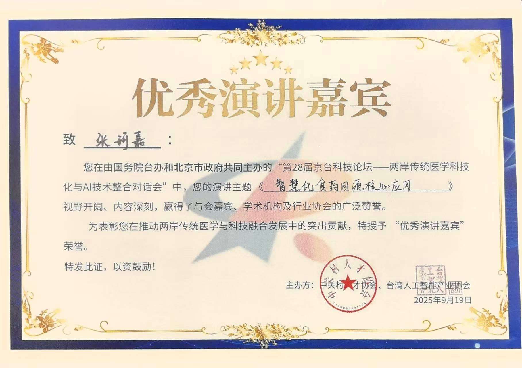 第二十八届京台科技论坛收官:许昌元化生物以科技赋能传统医学——“三化融合”入共识、签两岸合作,树立产业协同新标杆 2025年9月18日至20日,由国务院台办、北京市政府共同主办的第二十八届京台科技论坛在北京圆满收官。在论坛核心环节“两岸传统医学科技化与AI技术整合对话会”中,许昌元化生物科技有限公司(下称“元化生物”)总经理张珂嘉、常务副总石占伟全程参与,以“科技赋能传统医学”为核心,通过成果分享、产品展示与合作签约,交出亮眼答卷,成为论坛收官阶段的焦点企业。 本届京台科技论坛以“共育新质生产力 携手融合新发展”为主题,其中“两岸传统医学科技化与AI技术整合对话会”作为论坛关键议题环节,自开幕以来便聚焦“传统医学现代化转型”核心命题,汇聚两岸顶尖学术专家、临床研究机构及健康产业领军者,深度探讨技术路径与产业协同模式。随着论坛收官,各项成果落地与合作签约成为核心亮点,元化生物的实践成果与合作动作,正是论坛“融合发展”主题的典型体现。 论坛期间,张珂嘉总经理以《智慧化药食同源核心应用》为题发表主旨演讲,直指传统医学“经验难量化、传承易转化难”的行业痛点,提出“三化融合”落地路径——传统理论现代化转译(用现代科学解读传统药食逻辑)、生产过程智慧化管控(引入AI优化提取与品控)、产品效果数据化验证(以临床数据佐证功效)。该路径因兼具理论深度与落地性,不仅让张珂嘉获评“优秀演讲嘉宾”,更在论坛收官阶段被正式纳入《两岸传统医学科技化发展共识》,成为两岸传统医学与现代科技融合的“行业共识级方案”。 作为“科技赋能传统医学”的具象实践,元化生物两大核心产品同步亮相论坛展区,为“三化融合”路径提供产品佐证: - 全易德天门冬氨酸钙系列:锚定传统“药食补钙”理念,以分子级工艺突破传统钙剂吸收瓶颈,用现代技术实现“传统养生需求”的科学化落地; - 紫苏亚麻酸系列产品:溯源华佗“紫苏调畅气机、和胃养身”的养生理念,聚焦紫苏中亚麻酸核心成分,通过超临界萃取技术精准保留活性物质,完成“传统草本+现代营养科学”的融合升级。 两款产品因“从传统中来、靠科技升级”,在论坛收官展区交流中获两岸机构集中赞誉,成为“科技赋能传统医学”的鲜活样本。 论坛收官关键环节,张珂嘉总经理代表元化生物,与两岸科创中心、亦养科技正式达成两岸合作签约。三方以“技术共享+市场协同+生态共建”为核心模式,明确两大合作方向:一是推动两岸传统医学科研成果跨区域转化,打通“技术-产品-市场”协同链路;二是试点“智慧健康产品+社区服务”落地,让科技赋能的传统医学产品真正服务民生。此次签约,既是元化生物“科技赋能传统医学”的延伸,更成为论坛“两岸产业协同”的重要成果之一。 随着第二十八届京台科技论坛落幕,元化生物以“双核心成果”树立两岸传统医学产业协同新标杆——“三化融合”路径纳入行业共识,为技术协同定方向;两岸合作签约落地,为产业协同搭桥梁。作为深耕“传统医学现代化”24年的企业,其此次实践不仅印证了“科技赋能传统医学”的可行性,更以“共识+合作”的双轮驱动,为两岸健康产业协同发展树立了可参考、可复制的新标杆。