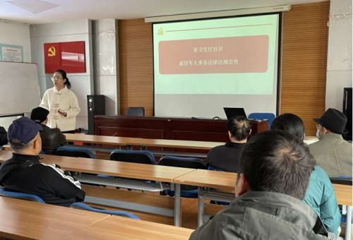 |     为切实做好退役军人政策法规宣传工作,提高退役军人政策知晓率,保障退役军人切身利益,营造尊重退役军人的社会氛围,10月22日上午,在花园路司法所的指导下,省卫生厅社区组织辖区内的退役军人开展《中华人民共和国退役军人保障法》的学习宣传活动。 活动现场,社区工作人员通过现场讲解,向退役军人详细介绍了退役军人的安置、就业、教育、医疗等多方面的权益保障,并针对退役军人及其家属解答疑惑。此外,工作人员还为退役军人提供法律咨询和援助服务,积极宣传相关法律知识,传递崇军爱军的思想,介绍退役军人服务工作内容,旨在为身边的退伍军人提供施展才能的机会和平台,生动诠释“退伍不退色”的精神。 通过此次活动的开展,退役军人对《中华人民共和国退役军人保障法》的理解更为深入,深切体会到党和政府对退役军人群体的关怀和厚爱,进一步提升了他们的归属感和荣誉感。与此同时,此次活动也有效促进了社区对退役军人的认知和敬意,营造出全社会的共同关心、爱护退役军人的浓厚氛围。下一步,省卫生厅社区将持续加大退役军人政策法规的宣传力度,致力于为退役军人提供更多优质、贴心的服务与支持。