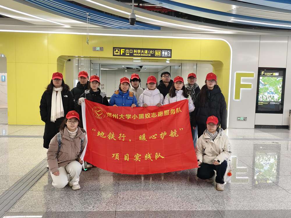 郑州地铁行·暖心护航|小黑蚁志愿服务队在行动 假期的打开方式有很多种,而我们选择穿上红马甲,在人来人往的地铁站,解锁一场温暖的社会实践。城市地下的钢铁脉络里,总有一抹红色身影温暖着匆忙的旅途。郑州大学小黑蚁志愿服务队“地铁行,暖心护航”项目实践队,在1月29号走进郑州地铁站,用行动诠释“奉献、友爱、互助、进步”的志愿精神。 明亮的站厅里,黄色的墙面与红色的志愿旗帜相互映衬,构成了温暖而充满活力的画面。郑州大学小黑蚁志愿服务队的队员们戴着统一的红色志愿帽,或站或蹲,共同举着“地铁行,暖心护航”的旗帜合影。清晨的微光透过地铁站的通风口洒在他们身上,每个人的眼神里都透着坚定与期待。这不仅是一张简单的集体照,更是一份郑重的承诺——他们将以小黑蚁般坚韧、团结的精神,在接下来的志愿服务中,为每一位乘客送去安心与便利。旗帜上的金色字样在灯光下熠熠生辉,就像他们的志愿初心,在城市地下的钢铁脉络里闪闪发光。这一刻的定格,既是活动的起点,也是青春担当的见证,预示着一天温暖而充实的服务即将展开。