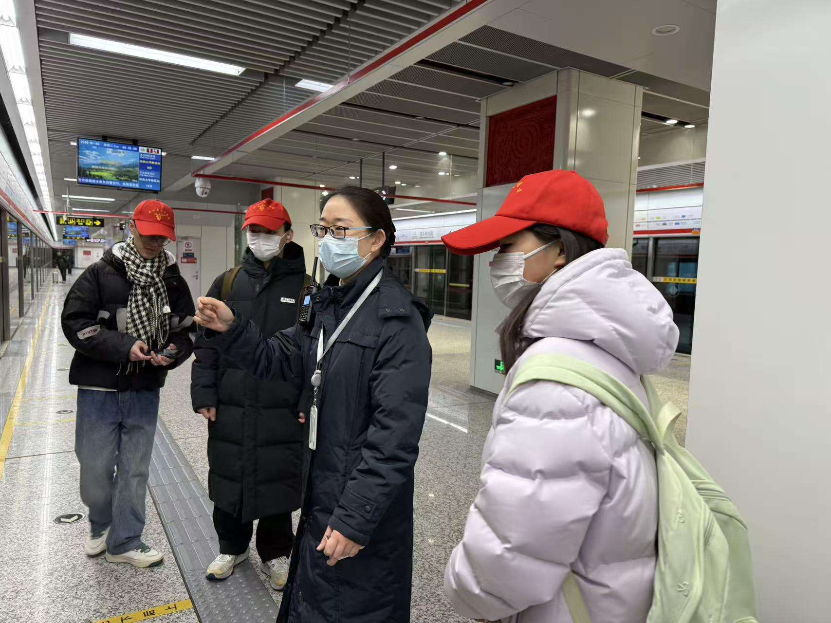 镜头下,志愿者们围站成半圆形,目光齐齐聚焦在前方讲解的地铁工作人员身上,构成一幅满是求知欲的生动画面。工作人员正用清晰的手势和精准的语言,讲解着列车进站时的引导规范:“列车进站前,要提前站在屏蔽门旁,手臂平伸指向黄线,提醒乘客不要越线。”从乘客问询的应答话术到无障碍服务的注意事项,从客流疏导的站位技巧到突发状况的应对逻辑,每一个细节都被反复强调、细致拆解。志愿者们眼中的光芒,是对即将到来的服务的期待,更是对“奉献”二字最真切的践行,这一刻的专注,为后续的志愿服务筑牢了专业的根基。