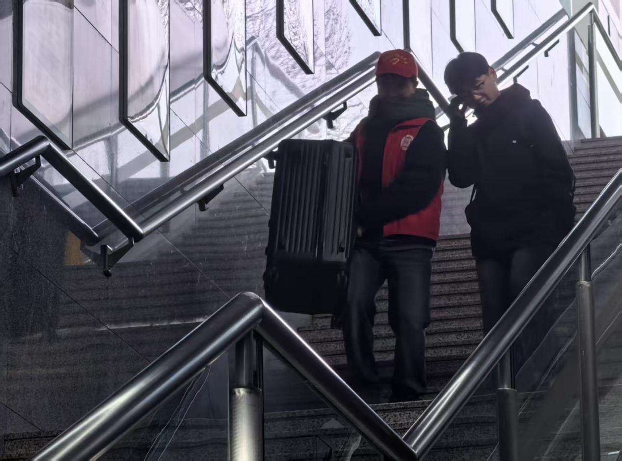志愿者为乘客搬运行李