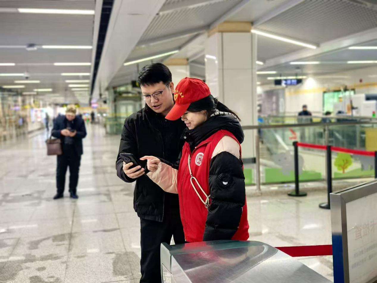 志愿者为乘客指明方向 此次活动是学院践行雷锋精神、深化实践育人的生动实践。青年学子走出校园、服务社会,将雷锋精神转化为实实在在的行动,既减轻了站点运营压力,也为市民营造了安全顺畅、温馨舒适的乘车环境。未来,学院将持续以学雷锋志愿服务月为契机,常态化开展便民志愿活动,引导青年学子以实干践行使命,让志愿微光汇聚文明暖流,让雷锋精神在服务一线代代相传。