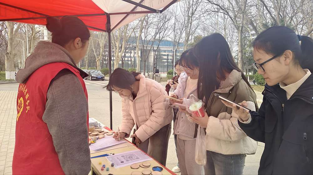 绘年轮悟生长 践志愿护绿意——文法学院环手爱青年志愿者服务队开展年轮绘画活动 为提升学生绿色环保理念,丰富校园文化活动,营造浓厚校园艺术氛围,河南牧业经济学院文法学院环手爱青年志愿者服务队于3月13日组织开展以“手绘年轮,共植绿意”为主题的活动。同学们在树木轮廓卡片上精心绘画,在动手实践中感受自然生长的力量。