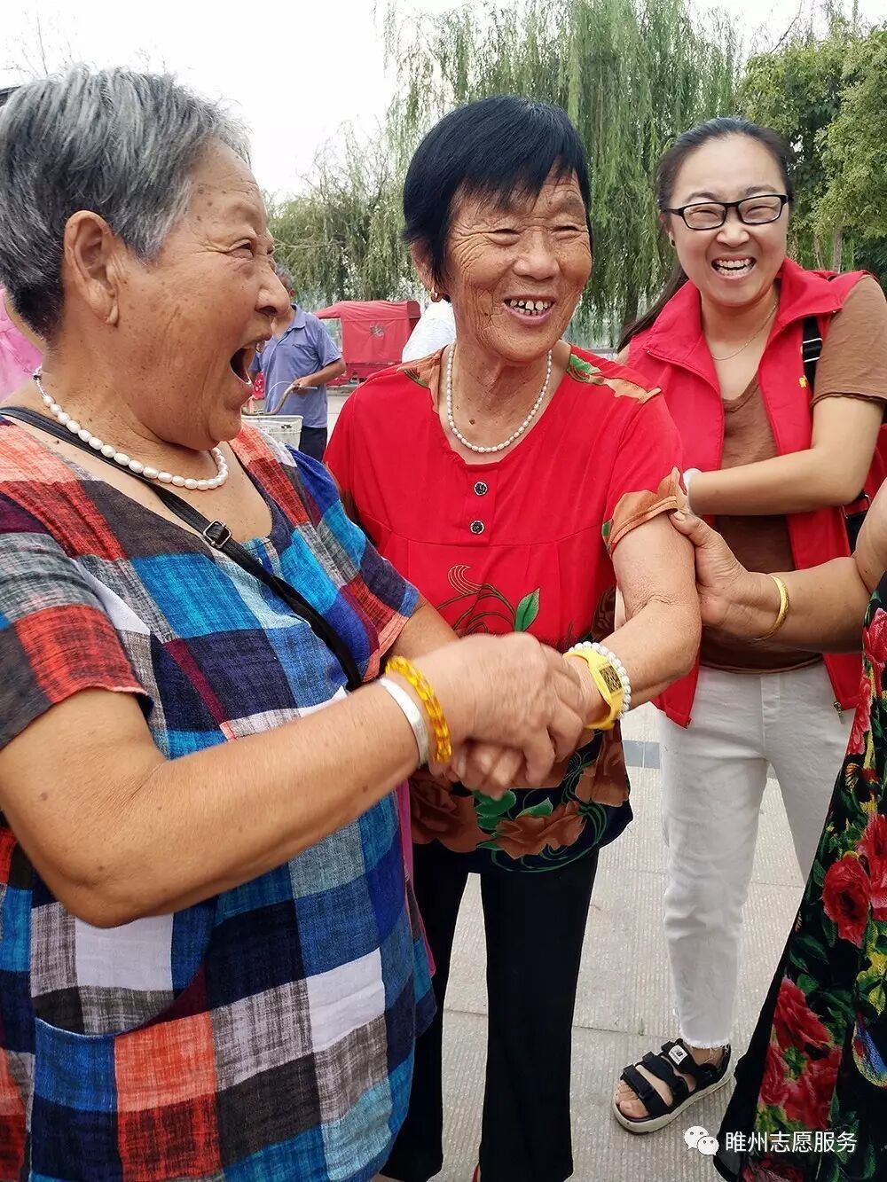 老姐妹同领黄手环我们永远都是姐妹花