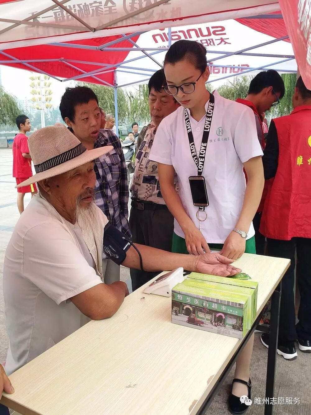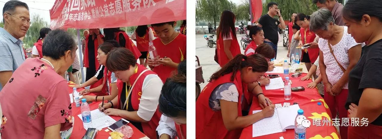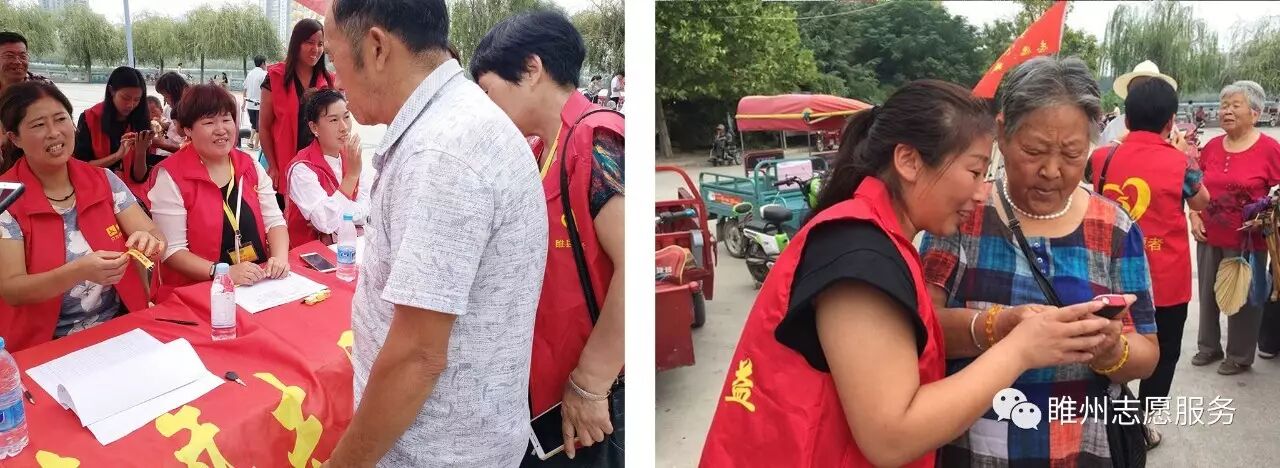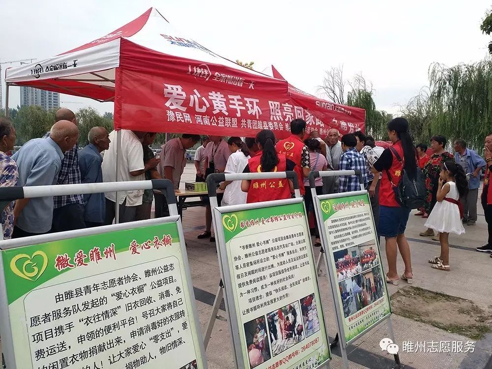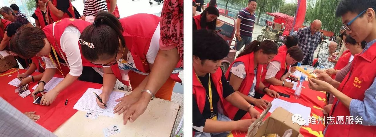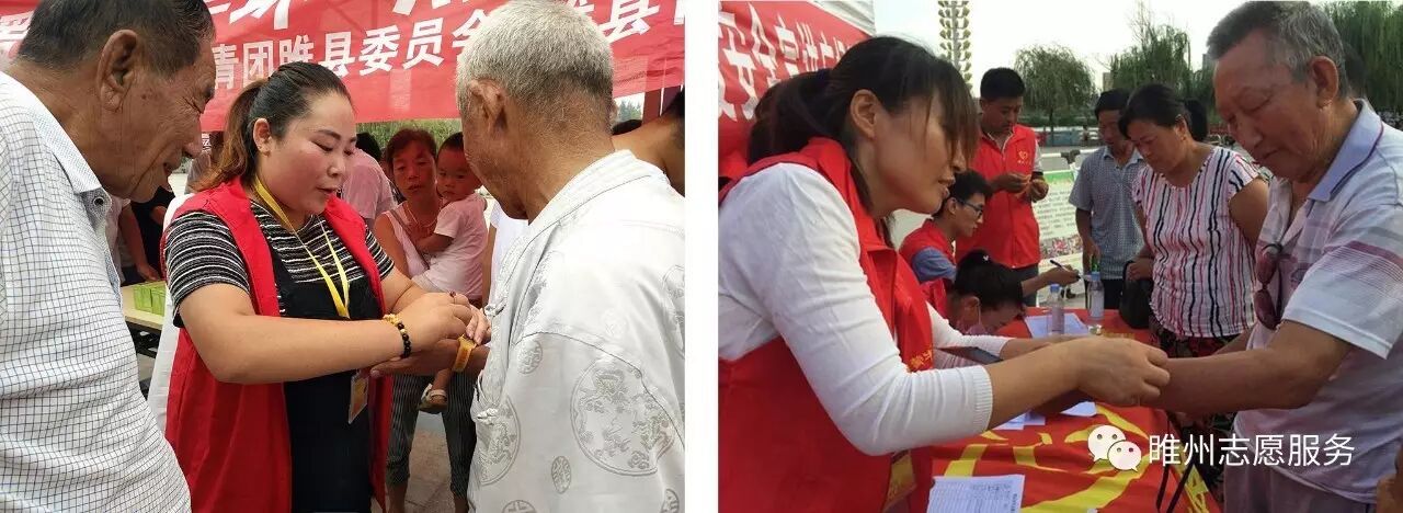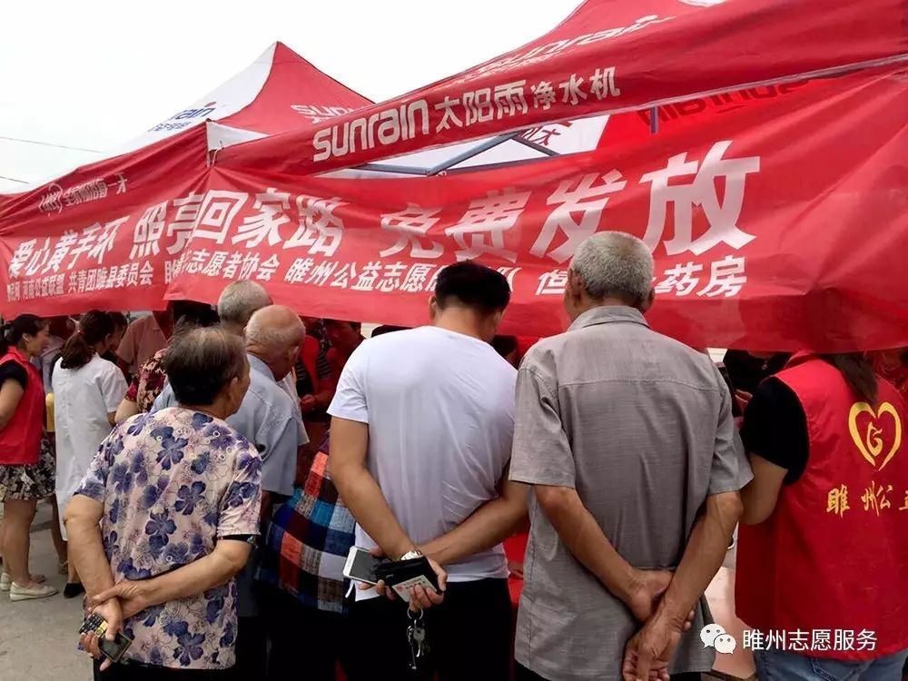 2017年8月26日由豫民网·河南公益联盟主办;共青团睢县委员会、睢县青年志愿者协会、睢州公益志愿服务队承办;恒生大药房协办的《爱心黄手环  照亮回家路》感恩开启!活动参与人数众多,活动同时开展为老人免费义诊和免费理发。炎炎烈日,汗如雨落,志愿者家人的热情依然不减,耐心讲解、悉心指导,让老人们感到满满的爱!志愿者们忙碌的登记老人们的信息