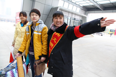 12月26日,高铁许昌东站,一青年志愿者正在为旅客指引售票窗口。据了解,自我市开展文明城市创建活动以来,各窗口服务行业不断优化办事程序、规范服务行为、完善便民服务,全面提升窗口服务形象。