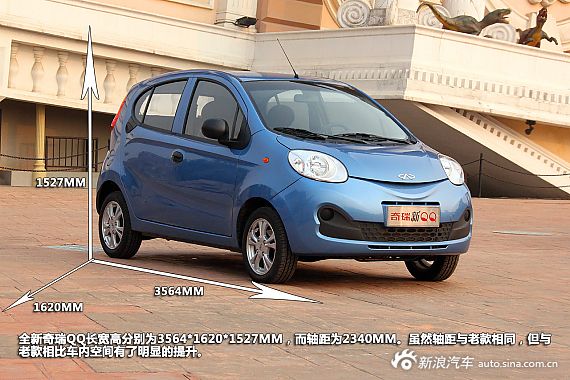 新QQ于1月21日开始在全国三百余家奇瑞4S店正式预售,预售期间共计有3款车型,价格分别为活力版3.9万、快乐版4.1万、时尚版4.3万。据了解,预售期间,厂家还推出了预订送多彩个性专属内饰套装的的活动。另据厂家透露,新QQ 3月份正式上市后还将推出自动档车型。 新QQ虽然经过全新设计,但是仍然延续了现款车型的可爱风格,俏皮的大灯延续了改款不久的运动版QQ3大灯轮廓。前保险杠上特别设计的弧形轮廓,进气格栅以及雾灯区域,共同构成了QQ的笑脸曲线,颇有几分马自达3的笑意。不过这样的设计有些过于卡通,可能更加吸引年轻女性的关注。 新QQ车身长/宽/高尺寸分别为3564/1620/1527mm,相比老款车型有明显增加,尤其是车身宽度大幅增加125mm后,将对车内乘坐空间的舒适起到质的改变。而轴距仍然为2340mm,保持不变。 内饰方面,新款QQ采用了新的内饰设计风格,可爱的元素依然充满其中。三幅式方向盘看上去十分简洁,中控台空调出风口采用了四边形设计,而两侧则采用的是圆形设计。 这款车型仍将延续1.0L排量的SQR371F发动机,最大功率和扭矩分别是51kw/6000rpm,93N·m/3500-4500rpm,匹配五速手动变速箱,可以肯定的是,后期将追加AMT变速箱。