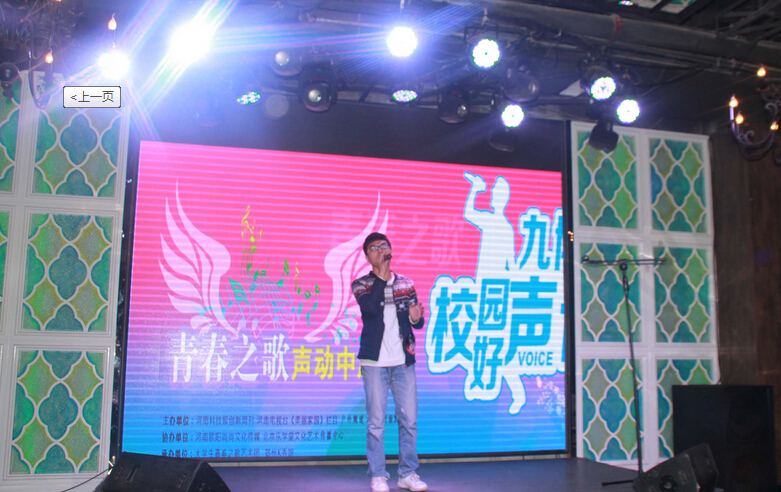 11月23日,由河南科技报创新周刊、河南电视台《美丽家园》栏目、户外频道《淘最河南》联合打造的青春之歌声动中原九博杯校园好声音选拔赛第一季正选赛在郑州市紫荆山路k秀馆激情唱响,来自省会多所高校的28位校园实力歌手火热PK、高潮迭起,整场比赛持续近3个小时,选手们的精彩表现赢得现场观众此起彼伏的掌声。最终,来自河南财经政法大学的李晗和黄河科技学院的侯汶序凭借出色发挥并列第一名,第二名和第三名分别被来自同一所学校中原文化艺术学院的邹望和彭璐璐摘得。
