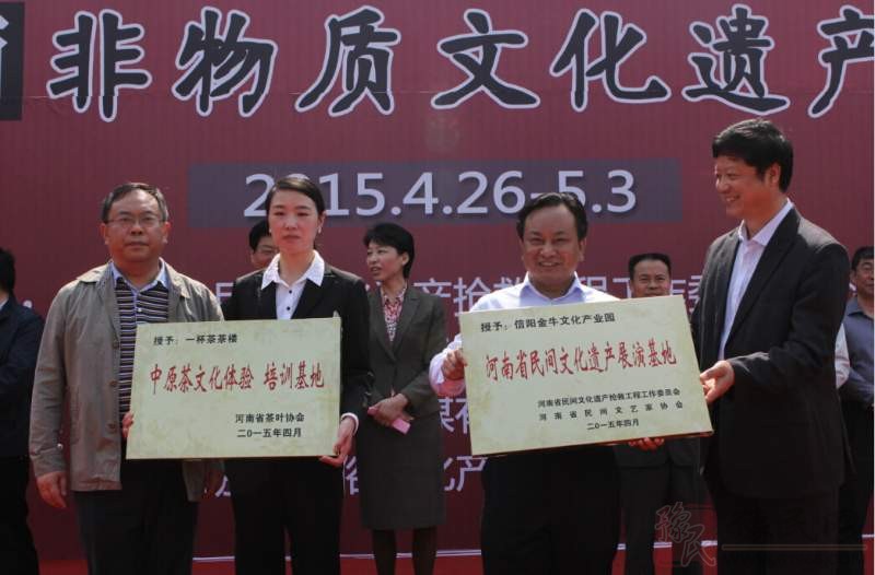 今日上午,由河南省民间文化遗产抢救工程工作委员会、河南省民间文艺家协会、中共信阳市浉河区委宣传部、信阳市文联主办,河南全媒体文化传媒有限公司、信阳天宝置业有限公司和信阳大别山民俗文化产业有限公司承办的第23届中国·信阳茶文化节暨“河南(信阳)非物质文化遗产展演”活动开幕式在金牛文化产业园内金牛古镇华丽开幕,信阳市及浉河区相关领导出席了开幕式。 河南省文联副主席程健君宣读河南省民间文化遗产抢救工程工作委员会、河南省民间文艺家协会授予金牛文化产业园为河南省民间文化遗产展演基地的文件; 开幕式上,浉河区区委书记邵春杰致开幕词。随后,河南省文联副主席张剑锋主席对河南省民间文化遗产展演基地进行授牌,信阳大别山民俗文化有限公司董事长熊心宏接牌。河南省茶叶协会秘书长李书中对茶文化培训基地进行授牌,信阳大别山民俗文化有限公司总经理韩莉接牌。 最后,市委常委、宣传部长焦豫汝宣布河南(信阳)非物质文化遗产展演活动正式开幕。 河南(信阳)非物质文化遗产展演,为河南省各地市文化交流搭建良好的互动平台。活动现场,有近百余个非遗项目、300多名传承人和项目代表参展,通过工艺美术展、河南老字号美食展、非物质文化遗产艺术表演、古玩展、茶配套展、信阳土特产展、信阳美食展、老中医会诊8个大项,采取了室内与室外、展示与展演相结合的方式,让人们亲身看到、听到、触到、吃到“非物质文化遗产”,真切感受到非物质文化遗产就在大家身边。近百位民间工艺家现场制作演示,同广大游客互动,让游客亲身感受民间工艺制作的流程和精湛技艺,尤其是少年儿童与家长的共同参与,更增添了传承守护中华民族共有精神家园浓浓的文化氛围。 作为我省开展非遗常态演出的一种探索和尝试,金牛古镇-一杯茶楼民俗大舞台将以前所未有的丰富节目向社会展演。少林武韵、河洛大鼓、河南坠子、唢呐绝技、豫剧、越调、京剧、二胡……让观众欣赏了传统文化的艺术之美;再加上张秀莲、江长军、薛凤兰、孙立君等国家级名家名角的亮相,使整个活动开展的更加丰富多彩! 据了解,此次活动的举办是为传承民俗经典、弘扬传统文化;重现中原绝技、汇集信阳特色;再现豫风楚韵、展示魅力信阳。对全省非物质文化遗产进行了一次集体大阅兵,展示河南省非物质遗产的精彩风貌,也为广大市民提供了一次了解河南省非物质文化遗产的宝贵机会。 在促进地方文化繁荣,促进非物质文化遗产的保护、传承和创新,提升信阳城市文化软实力方面起到了积极的作用,同时也为第23届茶文化节添上浓重的一笔。 大别山民俗文化村,由信阳天宝置业有限公司总投资建设,占地面积1080亩。由金牛文化公园、文化产业园和民俗文化体验园三大功能区组成。是一个把民族共同的价值倾向与中国传统文化紧密结合,以弘扬传统优秀文化、发展文化产业、培养品牌文化旅游企业为首要目标的综合性产业园区。文化产业园主要包括:何家安美术馆、一杯茶茶楼、金牛古镇、文化体育馆和民俗文化交流中心等主要建筑物组成。金牛古镇位于大别山民俗文化村一期金牛文化公园内,以古朴典雅的徽式风格构建,依托金牛山秀丽的山水资源,与信阳源远流长的历史民俗文化完美融合,是金牛文化产业园的“点睛之笔”.它将成为豫南规模最大的文化市场和民俗古街、信阳首家旅游综合产品交易市场、豫南最大的古玩城、河南非遗现代工艺品展销基地、豫南最大的土特产茶叶交易市场、信阳最具特色名吃一条街,更是浉河区对外宣传文化旅游的重要窗口。整个古镇造型古朴典雅,呈东西走向,商铺面积从150平米到300平米不等。重点经营字画、瓷器、古玩、玉石、盆景、根雕、名茶、美食、土特产、客栈等。