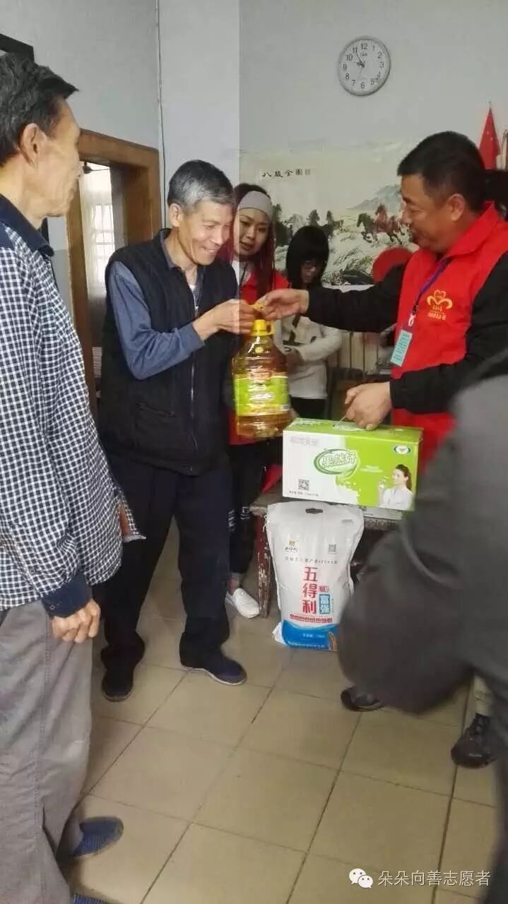 从敬老院出来后朵朵向善志愿者一行12人分别是领队磊磊、罗sir,志愿者晓晓,刘慧慧,丫头,桃李芬芳,三眼皮,萍,杨书芹,阳光,青山,香香等马不停蹄的开始走访困难家庭。先是驱车到达山城区企业局家属院走访了贫困户杜长生家,给他送去了米面油等物资,并详细了解了其正在上大学女儿的情况,为寻找合适的资助人做了详细登记。 然后驱车到达淇县高村镇漫流村的候爱英一家,送去了一袋大米、一袋白面和两箱纯奶。了解到其丈夫精神分裂,夫妻双方无劳动能力,(上有老母)并且在采集资料的时候发现男方的身份证和该户村民的户口本缺失。离开之前,其子匆匆赶来,说家里有三本残疾证,现在少了一本,正在补办。 与村民道别后,我们又踏上了崎岖的土路,继续前行到浚县小河镇耿潭村的钱林山家里,该户一家三口,女儿钱艳香年仅16岁,小学没毕业就不再读书了。目前在一位爱心志愿者开办的美容院做学徒。家中父亲下肢瘫痪,母亲双目失明。志愿者们将其父亲扶着走出堂屋门。 最后,走访了山城区的一家杜姓贫困家庭...... 虽然今天很冷,但是老人们的家中更冷。慰问活动结束后,看到他们久违的笑意,我们感觉没有白辛苦一趟。
