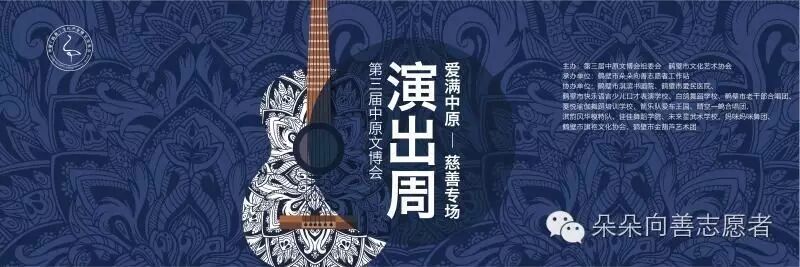 “爱满中原” ——第三届中原文博会朵朵向善慈善专场演出 10月13日,由第三届中原文博会组委会、鹤壁市文化艺术协会主办,鹤壁市朵朵向善志愿者工作站承办的“爱满中原”慈善专场演出在第三届中原文博会举行。 本次慈善专场演出节目精彩纷呈,少儿舞、瑜伽、模特舞、肚皮舞舞动人心,独唱、合唱、摇滚唱唱响全场,豫剧、旗袍、武术、葫芦丝民族风绚丽十足,给我市人民呈上了一场爱的慈善盛宴。 宣传扶贫济困、乐善好施的传统美德,弘扬慈善事业人人参与的社会风尚。本次“爱满中原”慈善专场演出在鹤壁市爱民医院的热情赞助下,在各爱心协办单位和爱心团队的大力支持下,在我市慈善事业的社会各界人士的关心下,取得了圆满成功。朵朵向善志愿者工作站在此表示衷心感谢!