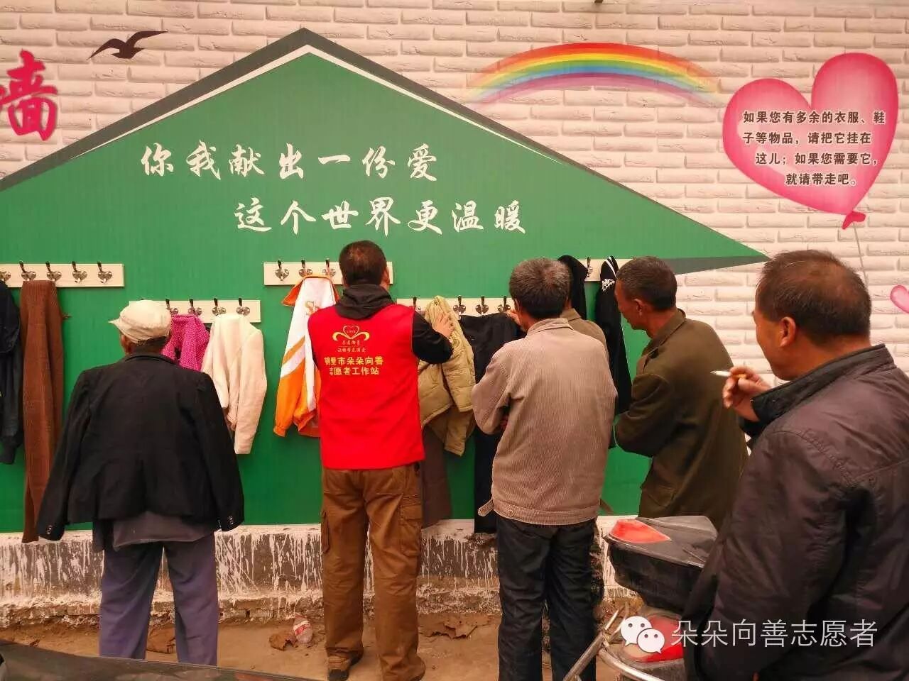 第一站是上峪乡桑园村。该村的年轻劳力几乎都外出务工,老龄化严重,是一个正在建设中的小村庄。暖心墙已经初具规模,并有桑园爱心扶贫超市,更利于精准扶贫。 志愿者们将衣物包裹卸下车后,在暖心墙上挂了部分冬装,便有附近的老人过来选合适自己的衣物。