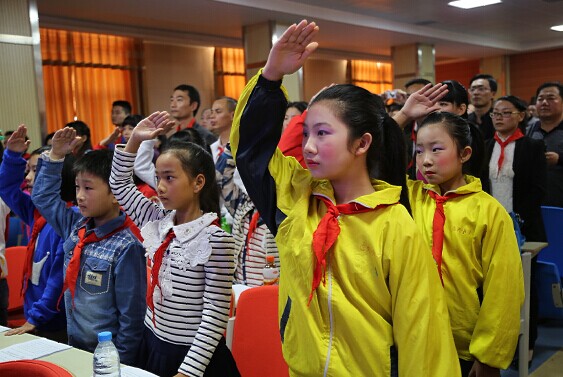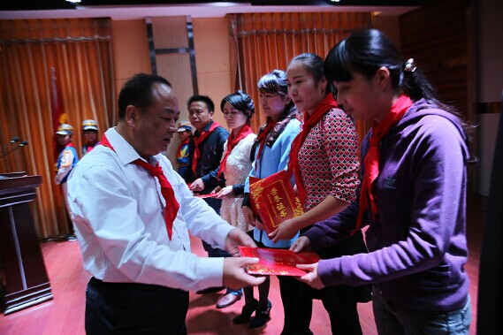 10月15日下午,信阳潢川县2014年“红领巾心向党”主题队日活动暨“浩华杯”“双十佳(十优)”表彰仪式在逸夫小学报告厅举行。县领导刘玉峰、全国“十佳”少先队辅导员杨建安出席活动,县关工委、团县委、县教体局负责人及各乡镇、办事处分管教育领导、团(工)委书记、中心校总辅导员、中心小学校长、中心小学大队辅导员,县直各小学分管德育副校长、少先队大队辅导员,2014年“十佳(十优)”少先队辅导员、2014年“十佳(十优)”少先队员及少先队员代表近300人参加活动。 活动在飞天艺术培训中心选送的歌舞表演《阳光下的欢乐童年》节目中欢快开场。 刘玉峰在讲话中指出,少年时代是美好人生的开端,是青年时代的前端,远大的理想在这里孕育,高尚的情操在这里萌生,良好的习惯在这里养成,生命的辉煌在这里奠基。少年要珍惜美好的生活,不辜负党和人民的殷切期望,不辜负父母的厚爱,树立远大理想,养成优良品德,培养过硬本领,历炼健康身心,在校做一名好学生,在家做一个好孩子,在社会上做一名文明的小公民,积极参与到“三轮车”整治等重点工作中来,身体力行地做好“文明交通”的代言人。全县社会各界要高度关注、重视青少年成长和关心下一代工作,努力形成关心少年儿童、爱护少年儿童,为少年儿童办好事、为少年儿童作表率的良好风尚,共同推动我县少先队事业全面快速发展,不断的为“五大潢川”建设增添青春活力。 刘玉峰希望,全县各级少先队组织,要高举队旗跟党走,在县委、县政府的领导下,在共青团的带领下,在教育主管部门的大力支持下,努力建设信念坚定、真诚服务、开放融合、魅力合作的少先队组织,团结带领全县少年儿童为潢川在“魅力信阳”建设中更出彩做好全面准备,努力开创潢川少先队事业更加辉煌灿烂的明天。 活动在县青少年校外活动中心选送的歌伴舞《我仰望五星红旗》中结束。 仪式上,团县委副书记戴永恒代表团县委、县少工委向大会致辞,县教体局副局长吴征勇宣读了表彰文件,少先队辅导员代表郭弢、河南浩华置业有限公司总经理王志强作了发言,现场为王真库、冯晶宜等2014年潢川县“十佳(十优)”少先队辅导员、少先队员颁发了证书和奖品。(李健 杨宏伟)
