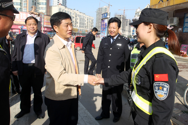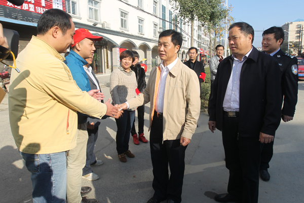 10月24日上午,潢川县长兰恩民、副县长毛鹏程看望慰问了在整治一线执勤的工作人员,并检查了城区交通整治工作。 兰恩民沿跃进路、内环路、航空路逐一查看了城区交通整治工作,对取得的成效表示满意。每到一处路口,都与工作人员一一握手,送去温暖的问候,代表县委、县政府向战斗在一线的人员表示崇高的敬意,感谢同志们为潢川交通秩序的畅通付出的辛勤努力和汗水、做出的牺牲和贡献,并要求大家继续努力,扩大战果,直至取得整治工作的全胜,为潢川人民营造一个秩序井然、通行顺畅、文明和谐的生活环境。 兰恩民一行还到整治办公室看望了全体工作人员,要求大家既要文明执法,又要依法处理,既要规范程序、公正处理,又要态度和蔼、耐心细致,兰恩民表示,处理不是目的只是手段,目的是让大家认识整治工作的意义,取得三轮车主及其亲属的理解和支持,对待特殊困难群体要体现人性化,区别不同情况分别对待,关键是要达到宣传教育的目的,让他们自觉遵守、自觉配合政府的整治工作。 兰恩民在处理现场同一名被查扣车辆的车主交谈时,耐心解释整治政策,希望车主自觉接受处理,为了让大家有一个良好的出行环境,也为自己和他人的人身安全,今后不要再从事三轮车非法载客营运,车主表示回去后卖掉三轮车,再也不开三轮车拉客营运了。(李健)