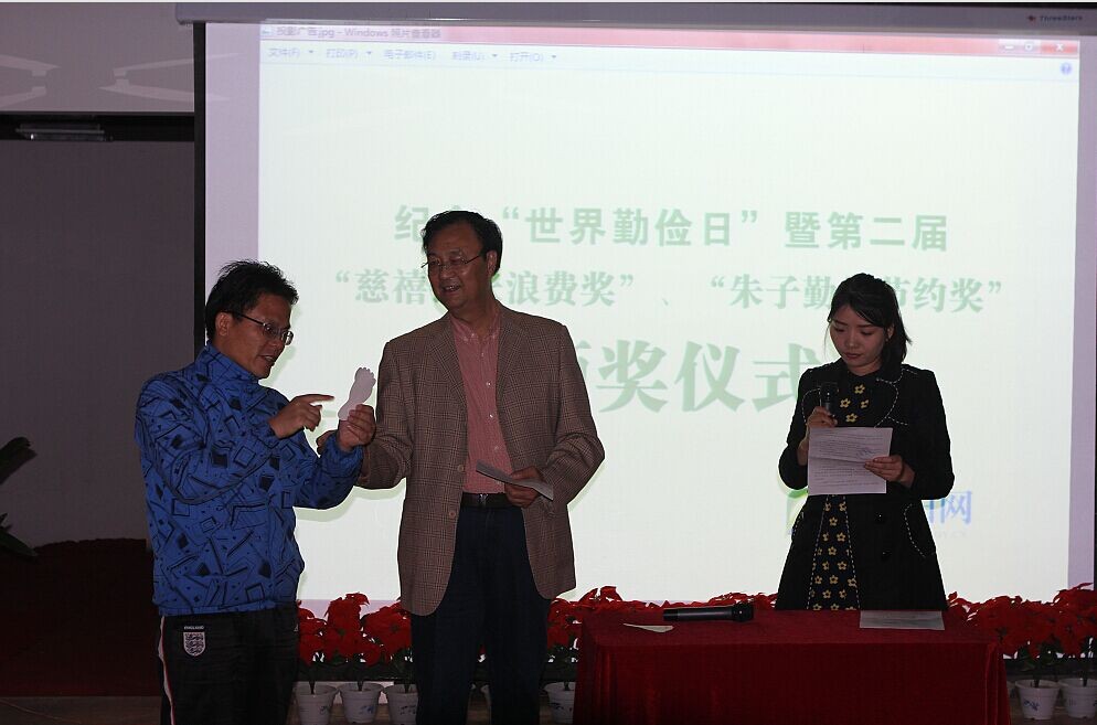 为巩固扩大群众路线教育实践活动成果,牢固树立“勤俭节约光荣,铺张浪费可耻”的绿色价值观,继续呼吁社会各界共同遏制铺张浪费的行为。10月31日,纪念“世界勤俭日”暨第二届“慈禧铺张浪费奖”、“朱子勤俭节约奖”颁奖仪式在河南信阳举行。此次颁奖仪式是由民间环保人士叶榄和信阳网等单位共同举办。 今年的评选颁奖活动是继首届“铺张浪费奖”、“勤俭节约奖”活动成果的基础上进行的,本届颁奖活动并将奖名更改为“慈禧铺张浪费奖”、“朱子勤俭节约奖”,以此通过祸国殃民、奢靡挥霍的慈禧命名该奖,更加说明铺张浪费行为对国家和人民的巨大危害,更具有深刻的教育意义。 仪式上,叶榄表示,习近平主席批示的“厉行节约、反对浪费”,是中华民族的传统美德,是一项长期的系统工程,需要全社会全民族的共同参与。希望通过颁奖活动,带动大家树立“勤俭节约光荣,铺张浪费可耻”的绿色价值观,提醒大家珍惜资源,绿色消费,做有生态道德、节约意识的文明公民。 据了解,本届“慈禧铺张浪费奖”共设三个奖项,分别是:大手奖,由郭美美获得,奖品是用再生纸做的“手形图案”,上面写的是先贤墨子《辞过》中的句子:俭节则昌,淫佚则亡;大脚奖,由云南省河口县人民政府。奖品是用再生纸做的“脚形图案”,上面写的是一代廉吏于成龙的名言:累万盈千尽是朝庭正赋,倘有侵欺,谁替你披枷带索;一丝半粒无非百姓膏脂,不加珍惜,怎晓得男盗女娼;大嘴奖,颁给原华润集团董事长宋林。奖品是用再生纸做的“嘴形图案”,上面写的是《朱伯庐治家格言》中的名句:一粥一饭当思来处不易,半丝半缕恒念物力维艰。 此次活动还颁发了第二届“朱子勤俭节约奖”。获得本届“朱子勤俭节约奖”的是国家粮食局发展交流中心、“黄金点菜法”、“英雄梦•新县梦”规划设计公益行专家、罗马尼亚志愿者西卡。 最后,潢川籍民间环保人士叶榄告诉笔者,所颁发的奖品都是用再生纸或用过纸张的背面做成的,目的是做勤俭表率,当节约先锋。同时,他呼吁国家相关部门尽快制定和设立“反铺张浪费法”,把权力关进制度的笼子,以法治遏制铺张浪费行为。(杨宏伟 胡静伟)