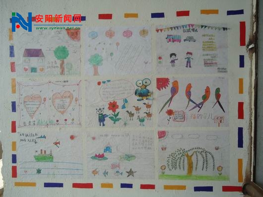 为了把自己的“家”打扮得更加漂亮,安阳林州市横水镇五中的孩子们在老师们的带领下,自己设计,自己动手,用他们仅有的最简单的彩笔,描绘出一副副朴实的图画,以此表达出他们对这个大家庭的爱,也表达出他们对美好生活的向往。 据了解,林州市横水镇第五初级中学是横水镇唯一一所小学、初中一体的寄宿制学校。全校现有200多名学生,分别来自周围的10个不同的村庄,其中,农村留守儿童占到95%以上。为了让孩子们生活上得到最大照顾,也让家长放心,该校一直重视校园文化建设,通过“六一趣味运动会”、“冬至包饺子”等一系列师生互动活动,拉近了师生关系。该校全体教师长年以校为家,视每一位留守儿童如自己的孩子,师生关系融洽,教学质量逐年上升,受到家长的一致好评。本学期,该校积极响应上级政策,结合学校实际建设校园文化,让学生们主动融入学校大家庭,把校园文化建设与校风、班风、教风建设结合起来,把“学会学习”与“学会做人”结合起来,做到“文化建设”与“教学成绩”两不误、两相促。(文:马庆明 图:冯广东)