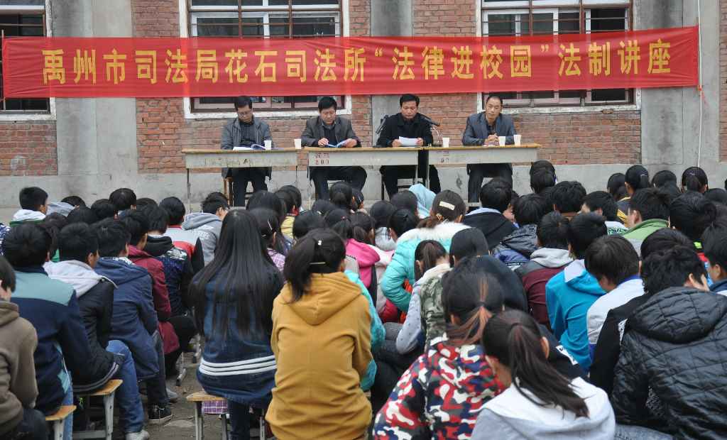 为了加强学校法治建设,提高学生的安全防范意识和自我保护意识,2014年11月7日下午,禹州市司法局花石司法所在花石镇第三初级中学举办了一场以“增强法制观念,预防和减少未成年人犯罪”为主题的“法制进校园”法制讲座,该校500余名师生聆听了讲座。 司法所长吕新凯首先围绕全市开展的“法律进校园”推进会及青少年法制教育巡展活动的主题——“点燃青春梦想、法律伴你成长”进行宣讲,引导青少年学生树立社会主义核心价值观,学法律、知荣辱、明是非,养成学法尊法守法用法的良好习惯。之后,特邀请从事法律服务工作多年的程相超律师,专门针对未成年人发育成长时期,生理和心理均未成熟,好奇心和模仿能力强、自控能力弱,情绪易走向偏激,思想和行为常带有片面性、盲目性和一触即发不计后果的特点,重点从青少年的犯罪成因、特点进行分析讲解,并结合生动详实的案例,给学生们敲响了预防犯罪的法律警钟。同时还引导学生培养良好的生活习惯和积极的人生态度,自觉抵制社会不良风气,学会自我保护的方法,为他们带来宝贵的法律常识和指引。他还利用一些发生在学生身边的具体案例详细解读了《中华人民共和国未成年人保护法》和《中华人民共和国预防未成年人犯罪法》,同时也向学生们传达了部分十八届四中全会关于依法治国的相关内容。 活动期间,司法干警还向学校捐赠了《法律常识宣传手册》等。 “司法局这次送法进校园的活动非常好,起到了我们课堂教学起不到的作用。由于法律的专业性很强,老师们在平时教学中对学生进行的法律教育作用有限,但司法干警通过真实案例讲解了相关法律,给人留下更深刻的印象,我们也争取把今天所学的带入到以后的教学中,做法律知识的传播者。”花石镇三中学校长连战全如实评价普法宣传活动效果。(张昆仑)