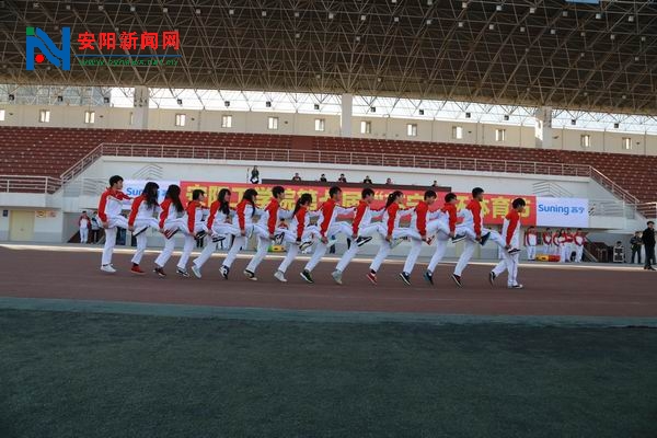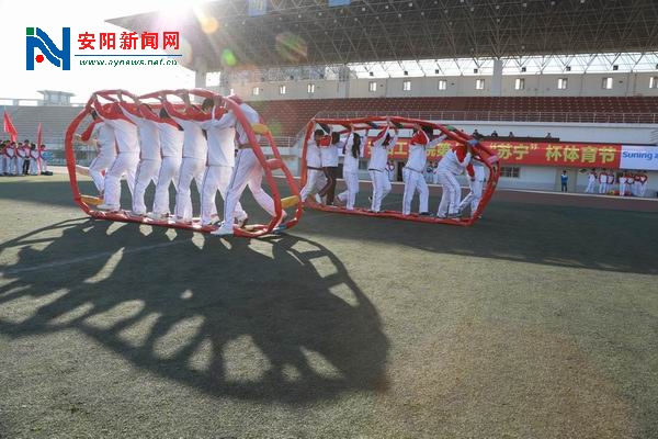 大会在雄壮的国歌声中开始。副校长孙保平在开幕式上致辞。他首先代表体育节组委会向参加文化节的全体运动员和裁判员致以诚挚问候,向为此次体育节付出辛勤劳动的工作人员表示感谢。他希望运动员在比赛中赛出风格、赛出水平,裁判员忠于职守、秉公裁决,工作人员精心组织、周密安排,并预祝体育节圆满举行。 随后,八个趣味比赛项目逐一展示。趣味十足的比赛项目、队员之间默契的配合、现场轻松幽默的配乐引得现场欢声迭起,高潮不断。 “以体育德,以体益智,以体促美”。据了解,本届体育节历时14天,来自十三个学院的1600余名运动员参赛,共设置“海底捞月”、“毛毛虫竞速”、“众星捧月”、“摸石过河”、“袋鼠跳”、“财源滚滚”、“轮滑投篮”、“手足相连”等八项趣味比赛项目,及跳绳、踢毽子、拔河、网球、乒乓球等五项常规比赛项目。奖励团体总分前八名,“体育道德风尚奖”四名。 安阳工学院体育文化节以健身为基础,以“团结、健康、快乐”为主题,大力推广健康、快乐的体育游戏活动,使学生们充分享受运动带来的乐趣,实现“人人爱运动,人人在运动”的校园体育文化氛围。“每天锻炼一小时,健康生活五十年,幸福生活一辈子”。近年来,安阳工学院认真贯彻落实《关于开展全国亿万学生阳光体育活动的通知》精神,积极开展各级各类体育文化活动多项,截至目前,体育文化节已成功举办六届,学校群众性体育活动取得了丰硕的成果。