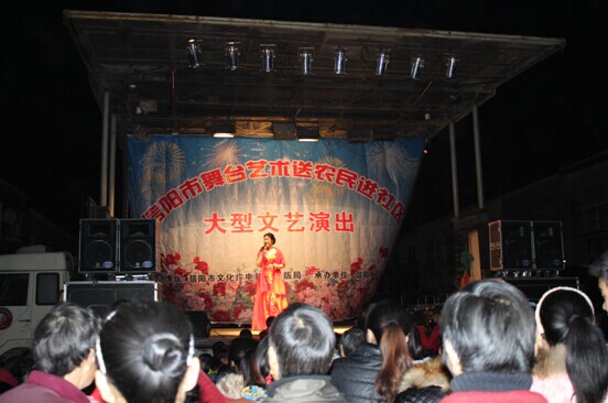 11月17日晚,信阳市舞台艺术演出团进行“文化下乡”活动,来到潢川县付店镇,在首集比较集中的居民区为广大基层群众送上一场文艺大餐。演出节目形式多样,丰富多彩,内容健康,贴近群众生活,符合群众口味,让群众有快乐、有触动、有启发。参加观看的群众有三百余人。 本次文艺汇演主要有戏曲、歌曲、小品、舞蹈等十六个节目,演员们嘹亮的歌声、优美的舞姿、幽默风趣而又紧贴群众生产生活实际的小品演出,博得群众一阵阵热烈掌声,深受群众喜爱和好评。 此次活动丰富了广大群众的文艺生活,同时还助推了付店镇“美丽乡村、文明新风、四进农家”工作,提高了群众的思想道德素质,力推了乡村文明的进程,为该镇精神文明建设增强了活力。(李健 瓮启兵)