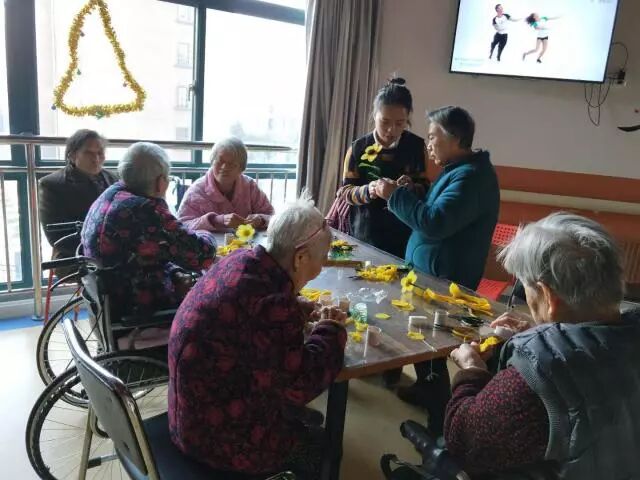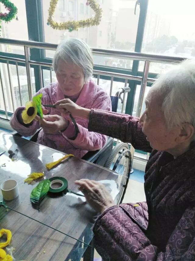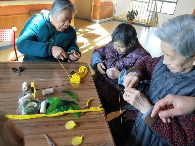 春运 · 图片故事 2017年12月12日,上街区民政局老龄办岗位在行动社工在通航社区为老服务中心开展的以“巧手慧心 幸福生活”为主题的手工小组第二节小组活动如期开始啦! 上节活动中,社工将已做好的向日葵花为老人展示,亮黄色的向日葵让人看起来心情舒畅。得知要做向日葵,老人们早早的就在活动室等待社工的到来。社工首先为组员介绍了本次小组的内容和具体安排。接着,社工给老人们发放制作的材料,老人们都很积极。社工向组员介绍了向日葵的制作要求、工艺特点等,并示范了如何制作一朵向日葵。当社工在给他们讲解制作方法的时候,老人们都聚精会神的听,认真的按照社工讲的方法去动手,在有不明白的地方时不时会询问社工。在社工及社区工作人员的帮助下,一朵朵美丽的向日葵就这样盛开在每位老人的手中。看到自己做成了向日葵后,老人的脸上笑意盈盈,拿着自己的作品纷纷向其他组员展示,还不停地念叨着“我成功啦!我成功啦!”。老人拿出手机让社工帮忙拍照留念,老人的笑脸就如手中的向日葵一样,幸福像花儿一样绽放。 简单的手工制作活动,不仅能丰富老人的晚年生活,加强老人间的沟通,也能够提高老人的自我价值感,实现老有所乐、老有所为。