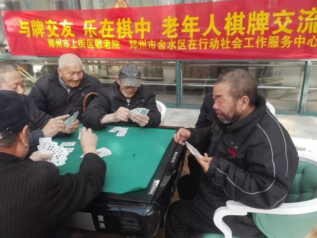 从2018年元旦开始,郑州市上街区陆续下了几次雪,人们感受到了冬天的寒冷。冬天来了,人们最喜欢的节日春节也快要到了。随着春节的脚步渐渐临近,敬老院的老人们逐渐感受到了节日的氛围,个个精神抖擞,喜气洋洋。同时,为了更好地丰富老年人的精神文化生活,陶冶情操,展示当代老年人的精神风貌,1月10日上午,郑州市金水区在行动社会工作服务中心驻上街区敬老院社工举办了一次老年人棋牌交流活动。棋牌活动有助于提高记忆力,尤其是老年人,经常玩玩牌,促使大脑思维智能不断地运用,必将对延缓衰老、防止大脑功能的退化十分有益。 在活动中,老人玩的是“斗地主”的游戏,游戏由四位老人玩两副牌,地主为一方,其余三家为另一方,双方对战,先出完牌的一方获胜。虽然游戏中老人年事已高,可比起赛来,认真劲儿可是一点也不输给年轻人。活动现场气氛紧张而热烈,老人本着“沉着冷静,赛出水平”的宗旨,非常认真细致的打出每一局。双方对阵的老人调兵遣将,逐鹿沙场,游戏中每一步都是判断、推理、计算和决策的过程。老人们通过方寸天地的拼搏,胜败各半,胜者不骄,败者不馁,把牌艺技术发挥得酣畅淋漓,精彩的牌局让其他老人大饱眼福。活动中每位老人笑容满面,精力充沛,朝气蓬勃。整个活动的气氛热烈而又紧张,扣人心弦而又不失活泼。 此次活动为敬老院的老人搭建一个相互沟通、相互交流、切磋技艺、展示风采的平台,增进了敬老院里老年朋友间的邻里感情,也使院内老人充分享受活动的快乐,为老年夕阳红增添一抹最美之色。同时,本次活动使工作人员和老人的关系更加融洽,为今后工作的开展奠定了良好的基础。敬老院的老人对此次活动都非常满意,表示今后将积极支持敬老院的工作,也希望经常开展各类活动。 注:老人们在参加活动