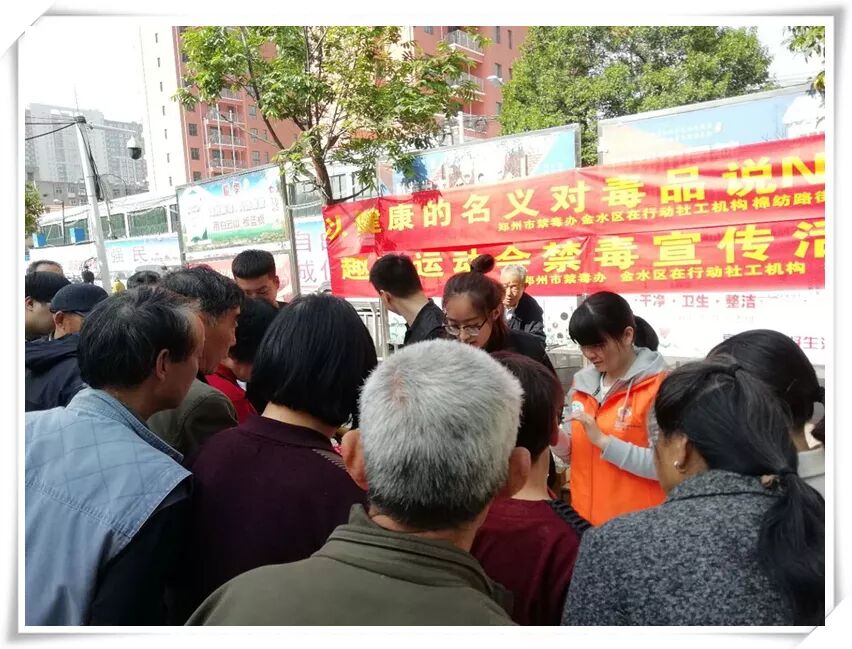 为贯彻中央及省、市领导关于禁毒会议精神,提升郑州市市民识毒拒毒防毒意识,营造郑州市浓厚禁毒氛围,郑州市禁毒办联合郑州市金水区在行动社工机构与2018年4月17日在桐柏路分局辖区开展主题为“以健康的名义对毒品说No”的禁毒趣味运动会。 本次活动形式多样,采取趣味运动会的形式,吸引市民来参加活动。活动共设置七个宣传摊位,主要活动环节分为:趣投飞镖、毒品分类、毒品诗词朗读、毒城大闯关等,同时配备有仿真毒品展览,宣传册发放等内容。活动集体力运动,脑力运动及毒品宣传为一体,提倡健康生活方式的同时,让市民认识毒品,并了解毒品的危害。活动内容丰富有趣,其中“毒城大闯关”的趣味运动项目最受市民的青睐。闯关图纸涉及到毒品认识,吸毒危害,社区戒毒(康复)应注意事项,如何拒绝毒品等知识,市民在该项目运动中根据要求做任务并得到奖励或者惩罚,让市民在闯关的过程中了解毒品给个人、家庭、社会带来的不良影响,并根据内容提示积极做出努力,帮助自己帮助别人远离毒城,最终闯关成功,远离毒城,拥抱健康生活,成为一名禁毒达人。该运动项目被参与活动的市民喻为“行走的教育基地”并希望此类活动可以走进学校,让更多的青少年也可以通过有趣的方式了解毒品,远离毒品,建立一个健康的生活方式。 该活动得到桐柏路分局民警、棉纺路街道办事处,彩虹社工的大力支持,发动15名工作人员参与到该活动中,共发放宣传册200余份,300余人次参与到禁毒趣味运动项目中。据悉,禁毒趣味运动会将趁着人间最美四月天继续深入社区,或将深入学校,为更多市民提供毒品宣传预防教育服务。