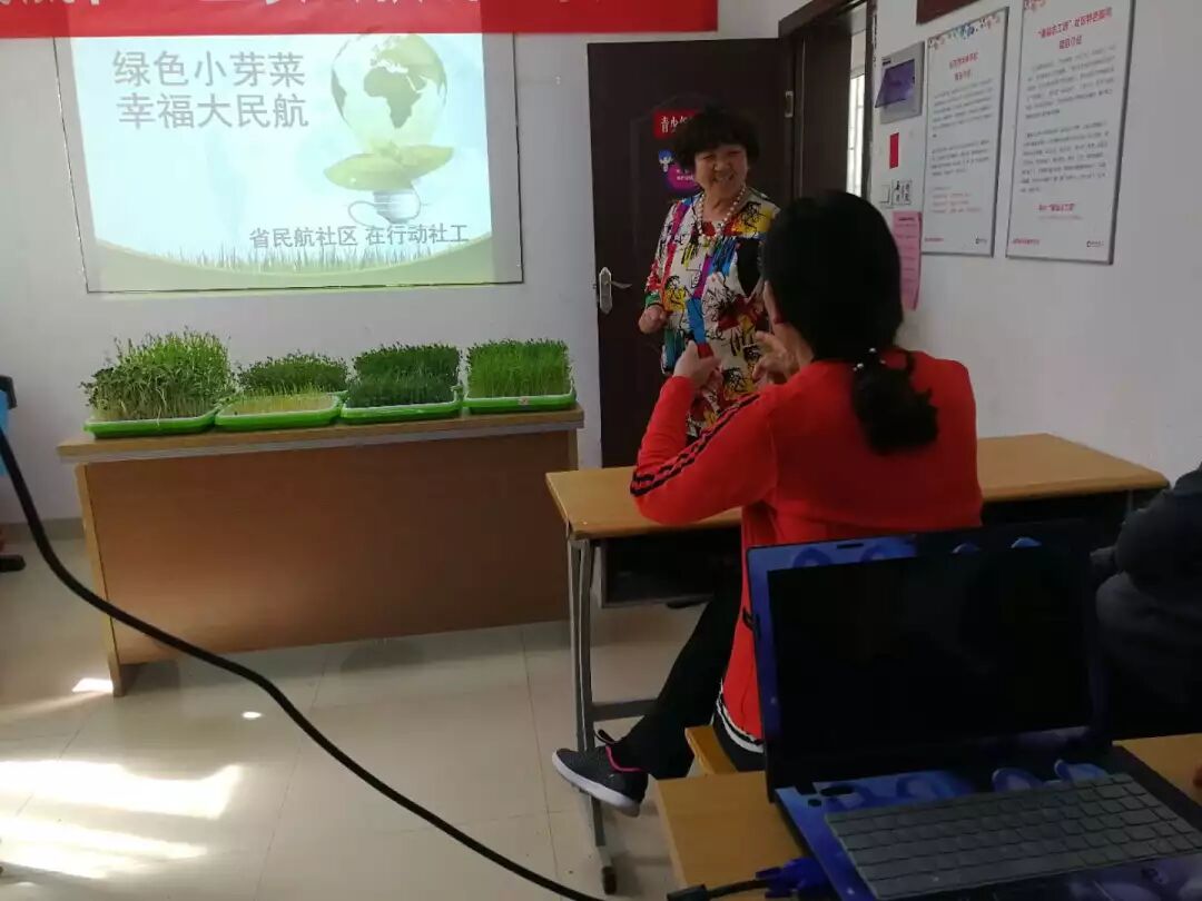 面朝大海 为更好的管理“绿航家园”志愿者团队,更好的维护“生态科普阳光房”,更好的调动“绿航家园”志愿者参与社区服务活动的积极性,2018年4月27日,在行动社工联合省民航社区在活动中心二楼四点半课堂开展“绿色小芽菜 幸福大民航”志愿服务活动。 经历了若干次志愿服务,“绿航家园”志愿者服务队成长到一定的高度,社工与省民航社区王书记商讨后,决定征求并尊重大家的意见,征集生态科普阳光房“一日管家”人员名单与志愿活动积分意见。 在活动开始后,首先,由王书记为志愿者们介绍今后“绿航家园”志愿者队伍的成长方向及服务走向,社工宣读志愿服务积分及礼品兑换的详情。随后,王书记征集大家对于志愿积分兑换、义卖及生态科普阳光房“一日管家”的意见,大家纷纷表示支持,愿意参与到活动中。之后,王书记邀请志愿者们踊跃分享芽菜种植经验,现场积分,鼓励大家今后积极参与社区活动。樊老师争当志愿服务第一人,率先表态,向大家分享了各种芽菜种植的经验及窍门,受到大家热烈欢迎。最后,志愿者们在社工处报名,参与生态科普阳光房的管理,争当阳光房“一日管家”。 随着此次活动的开展,社工将带领省民航社区“绿航家园”志愿者队伍向着自我管理、自我发展的全新方向迈进。