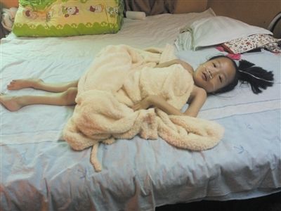 躺在病床上的李梦瑶 “我很想念以前的同学,可是他们现在学习都好忙!我好羡慕他们能够上学哦!”25日上午,躺在普仁医院病床上的李梦瑶对记者说。李梦瑶今年13岁,出生在信阳市一个普通的家庭。3岁的时候,李梦瑶在一次偶然的摔倒之后被发现胸部有些凹凸,后来在医院被确诊为SMA病症,也就是俗称的佝偻病。当时的医生介绍说,这种病还不能做进一步的治疗,只能尽量维持现状。 “医院的费用太高,住了几天我就把梦瑶接回家来照顾。”李妈妈对记者说。就这样李梦瑶在妈妈的悉心照顾下病情慢慢有了好转,这期间还完成了小学学业。可是,就在今年11月16日下午,李梦瑶的病情突然恶化,李妈妈随即将其送到市中心医院,但院方说李梦瑶的病情太重,他们治不了。17日凌晨1时多,李妈妈把李梦瑶送到了武汉一家医院,然后住进了重症监护室。可是,每天5000元的医疗费对李妈妈来说实在是太昂贵了。“这些年,家里所有积蓄都花光了,现在只能东拼西凑,但远远不够给她治病。”李妈妈对记者说,“她爸爸自从她患上这个病后,就离家出走了,至今没有消息。现在都是我一个人在支撑。” 由于没钱,李梦瑶在武汉只住了4天,21日就转回到信阳普仁中西结合医院。记者从医院了解到,李梦瑶前期的治疗费用大概需要12万元,而整个治疗过程加上后续护理的费用,共需要100万元左右,这个数字对于小梦瑶一家来说,简直就是个天文数字。“等我病好了,我就去上学。”看着被病痛缠身却依然乐观微笑的小梦瑶,看着满脸倦容却依然守护在小梦瑶身边不离不弃的李妈妈,所有人都为之动容。 目前,信阳义工联的志愿者们正在积极地为李梦瑶联系各种公益组织、媒体,希望能有更多的人去关注和帮助她。