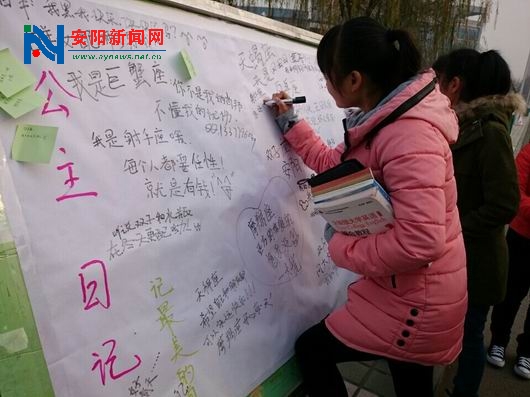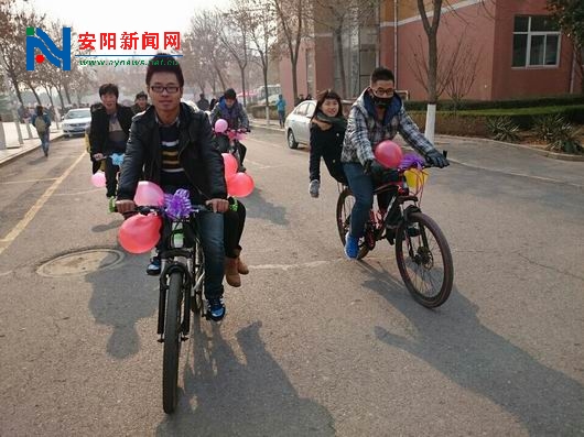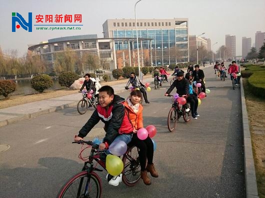 12月3日上午,安阳工学院计算机科学与信息工程学院学生会举办“女生节”活动,精彩有趣的活动吸引了大量学生围观参与,为冬日的校园增加了一道亮丽的风景。 活动“公主日记”鼓励女生写下自己的心声和对未来的期盼,大胆表达自己;“校园环游”活动则要求男生骑着装饰过的自行车载着女生环游校园,听着音乐,享受阳光;“爱的心愿墙”,女生将写有心愿的便利贴折成自己喜欢的形状,等待有缘的男生摘下为之实现;还有“听歌识曲”,“你猜”,“幸运十二星座”等小游戏供同学们参加。 参与活动的一位同学说:“我写了想要一颗苹果的心愿,没想到刚刚就收到短信说下午放学就送过来,给了我个惊喜!我还和室友一起参加了听歌识曲,得到了一朵手折的纸玫瑰,今天玩得很开心,希望以后多点这样的活动。”车队中的一名男生张同学说:“听系里说有这个活动就和室友一起报名了,虽然天气比较冷,但男生辛苦一点没什么,让女生玩得开心就好。” 本次活动旨在丰富学校女生课余文化生活,帮助女生了解自己,关爱自己,树立女生“自尊自爱,自强自立”的健康形象,展现当代女大学生风采,为每位在校女生送上节日的祝福。