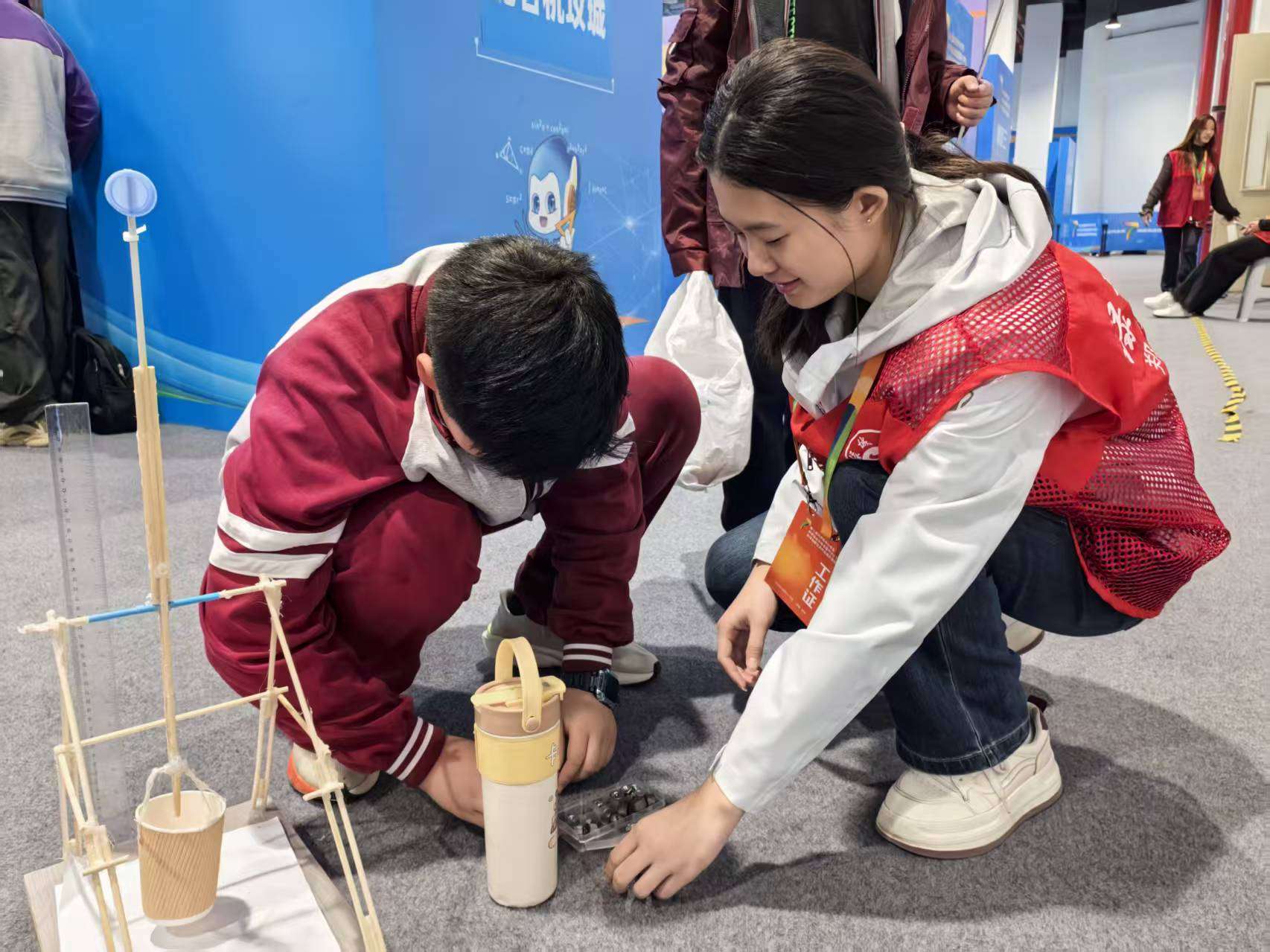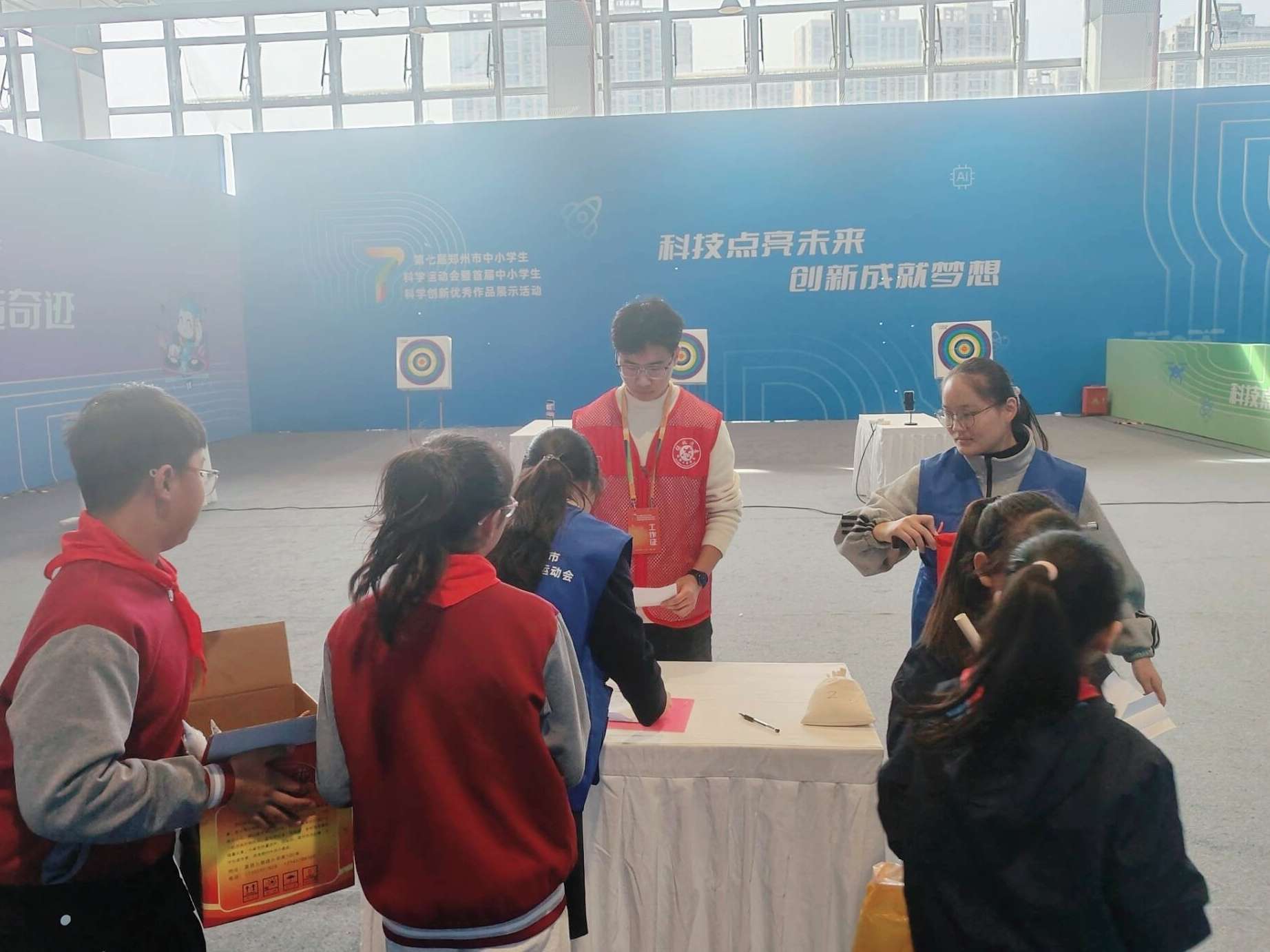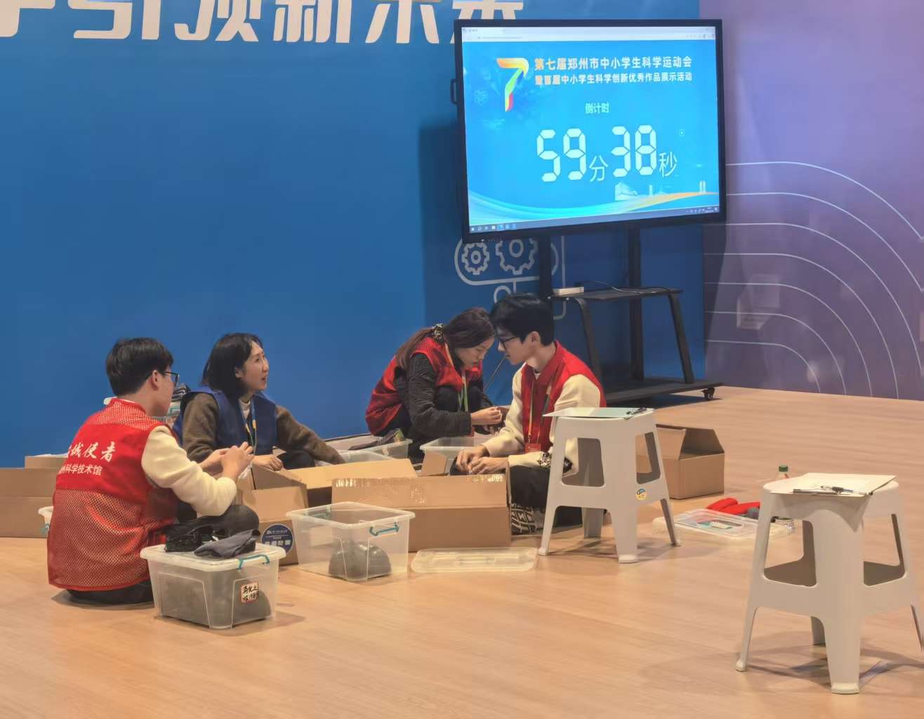 凝志愿星火聚青年热忱,耀科技光芒燃奋斗青春 为促进科学文化普及,助力青少年科学素养提升,弘扬“奉献、友爱、互助、进步”的志愿服务精神,电气工程学院小马达志愿服务团于10月18日和19日组织大学生志愿者前往郑州科技馆,为第七届郑州市中小学生科学运动会决赛提供全程保障。以志愿之名赴科技之约,这群以青春为笔、以志愿为墨的志愿者,用专业与热忱为科技赛事注入温暖力量,用点滴行动诠释别样的价值与担当。 为确保活动顺利进行,在活动前期小马达志愿服务团进行了精心筹备,选拔责任心强、具有良好沟通能力的志愿者,并开展专项培训,明确评分规则、工作流程和注意事项。志愿者们怀着热忱与责任,以最好的状态为此次科学运动会决赛护航,用实际行动践行着志愿精神,让科技之光照进大众心中。 在活动现场,志愿者们各司其职,以高度的专注和严谨的态度投入工作,在各个岗位点亮志愿星火。在评比现场,他们穿梭于各展台之间,认真细致地向评委老师报送参赛作品的成绩,并迅速准确地完成分数统计,保障了比赛评比的公平和高效。此外志愿者们还主动化身“科学助教”,耐心解答着小选手们的疑问,协助他们调试了运用光学、力学、机械传动等原理的科技作品。志愿者们用热情的服务播撒科学的种子,用温暖的陪伴守护童真的笑脸,让科普教育在互动体验中焕发出新的活力。 从清晨到日暮,志愿者们的脚步从未停歇,他们忙碌的身影成为了科技馆里一道亮丽的风景线。此次活动的意义远超一场赛事服务,于青少年,它是近距离触摸科学的“启蒙课”;于大学生,它是锤炼能力、践行担当的“实践场”;于科学传播,它搭建起大学与基础教育联动的“桥梁”。小马达志愿服务团用行动证明,当代大学生既是科学知识的追求者,更是科学精神的传播者。志愿星火汇聚成炬,科技锋芒照亮前路,青春奋斗的身影正是科学梦想最坚实的护航力量。 探索无界,志愿有爱。此次科技志愿服务活动不仅锻炼了志愿者的组织协调能力和实践能力,更为孩子们搭建起一个接触科学、了解科学、投身科学探索与创新实践的广阔舞台。未来,小马达志愿服务团将以此次活动为契机,用专业知识传递科技火种,用青春热情诠释志愿精神,让“科技蓝”与“志愿红”交织出更绚丽的画卷,让“青春之花”在祖国科技创新需要的地方绽放光彩!