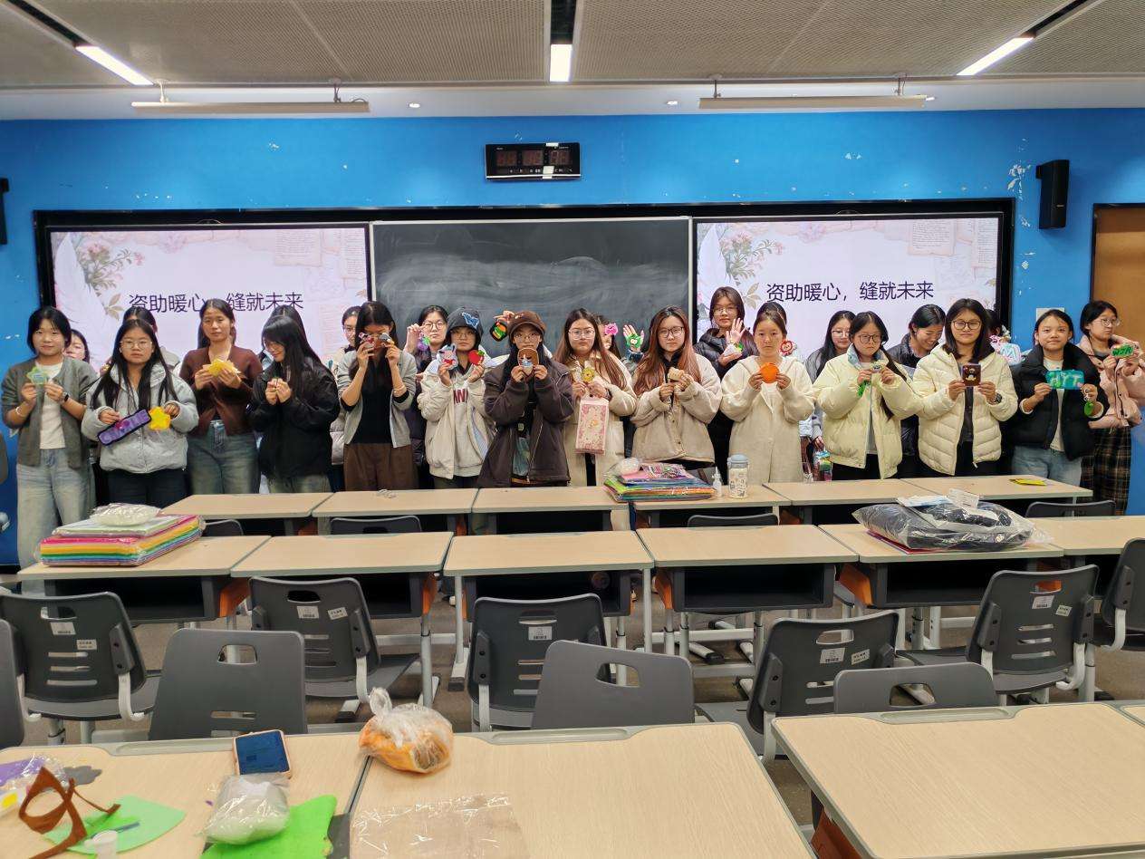 会计学院开展“资助暖心,缝就未来”活动——以手工织就希望,资助育人暖人心2025年11月24日,会计学院“资助暖心,缝就未来”主题活动在5205教室温情启幕,多名家庭经济困难学生代表参与其中。活动将资助政策宣讲与手工实践相结合,让关爱在针线间传递。 现场,学院资助专员细致解读奖助学金申请、临时困难补助等政策,针对同学们的疑问逐一解答。随后的手工环节中,志愿者手把手指导大家缝制布艺收纳袋,从穿针引线到锁边缝合,同学们专注投入,互相交流技巧。当承载心意的成品完成时,现场满是成就感。 “政策讲解很实用,手工体验更暖心。”参与学生李同学表示。学院学工办主任称,活动以“缝”为喻,既传递关怀又培育技能,未来将持续深化资助育人内涵,让暖心举措护航学子成长。